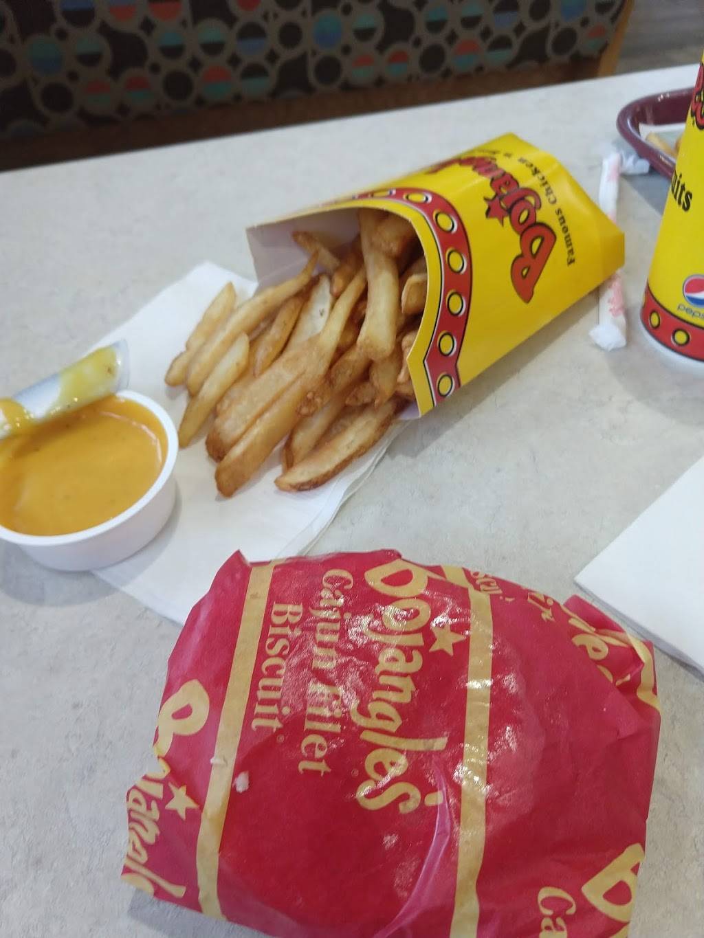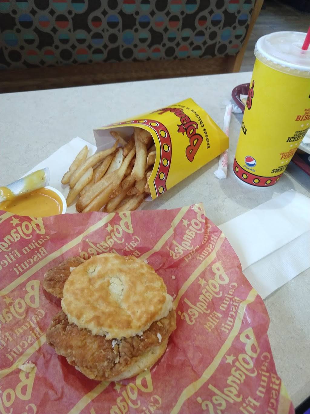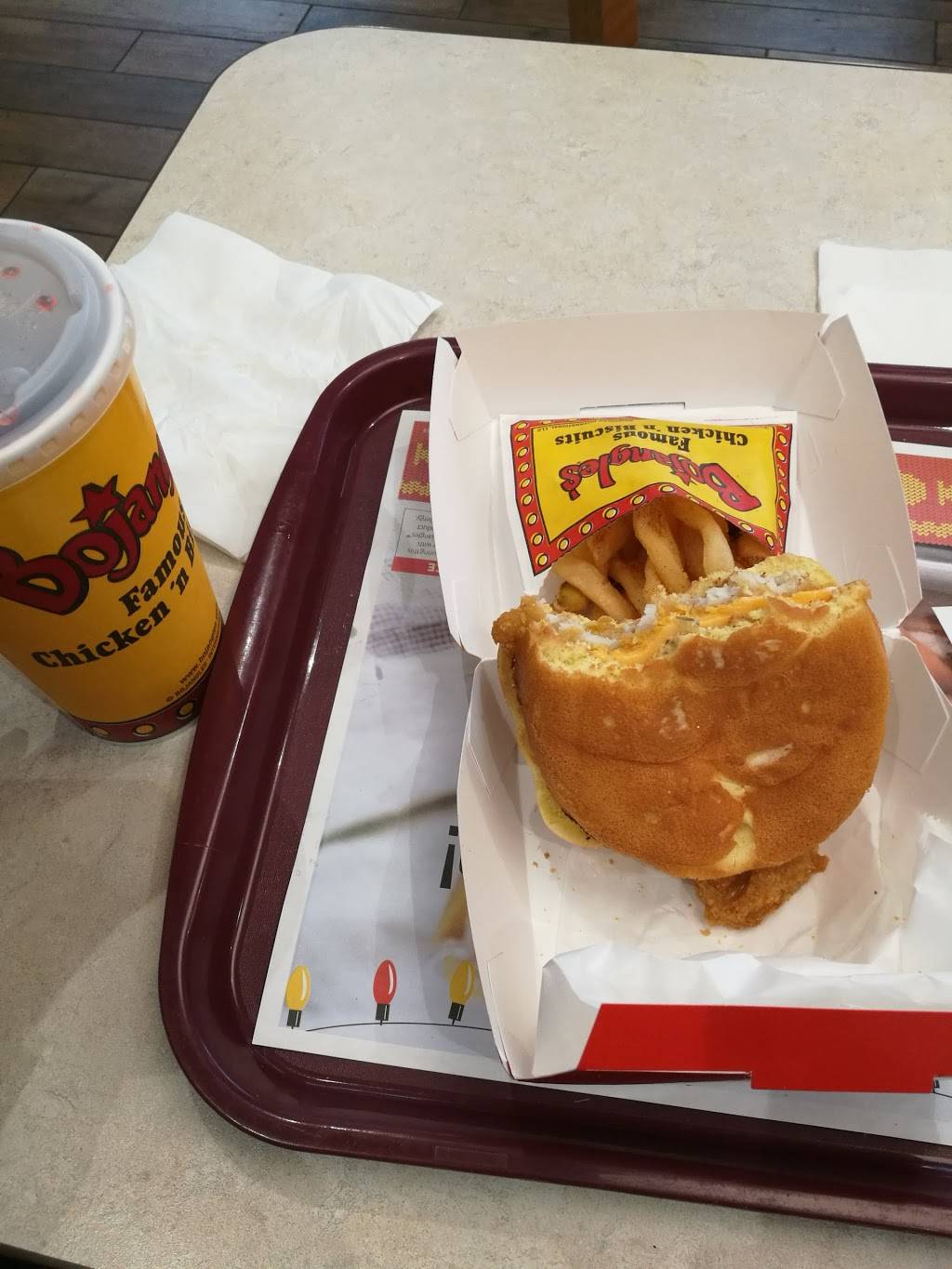 Friendly service and food is good. Only problem, they ran out of tea. Still the best Bojangles near here.