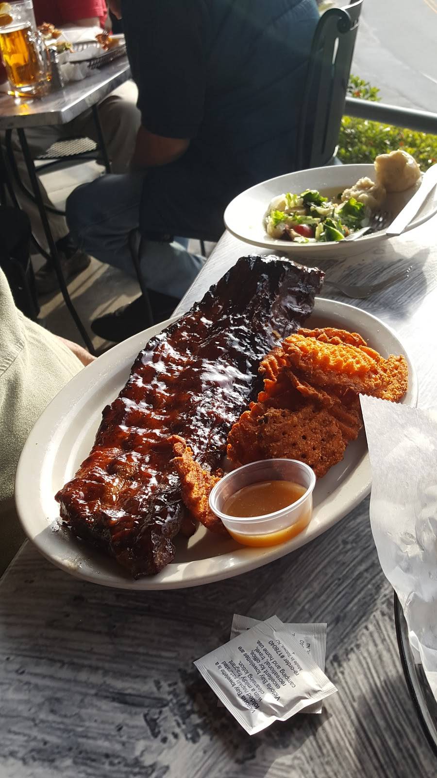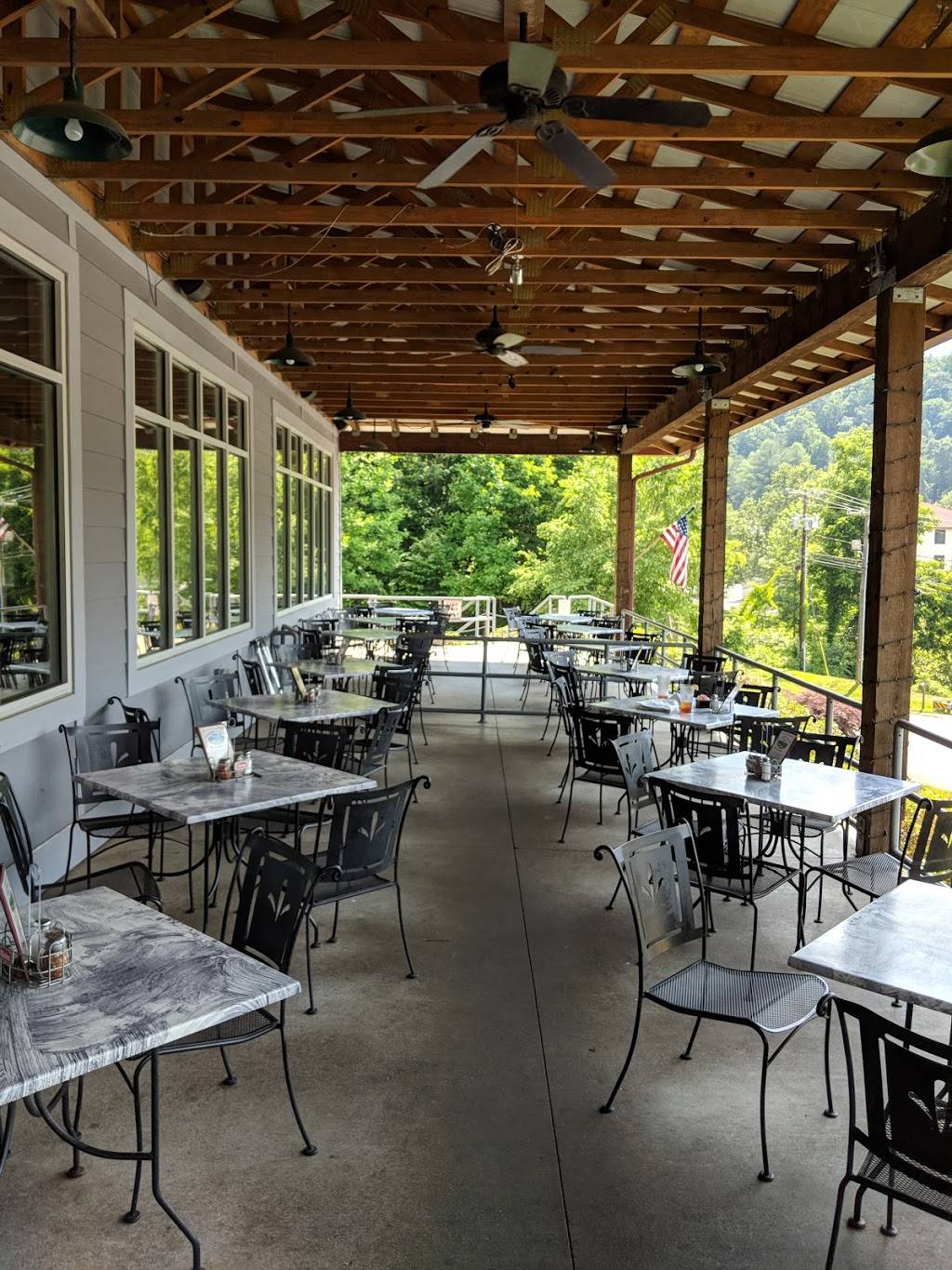 Great views so try and sit on the balcony or at least by the windows so that you can enjoy the view of Lake Lure. My husband had the Ribs and he said they were the best he ever had, they were falling off the bone they were so tender. I had the hamburger and it was your typical burger, I was satisfied with it. They have helpful and friendly staff. They do not take reservations even for large groups.