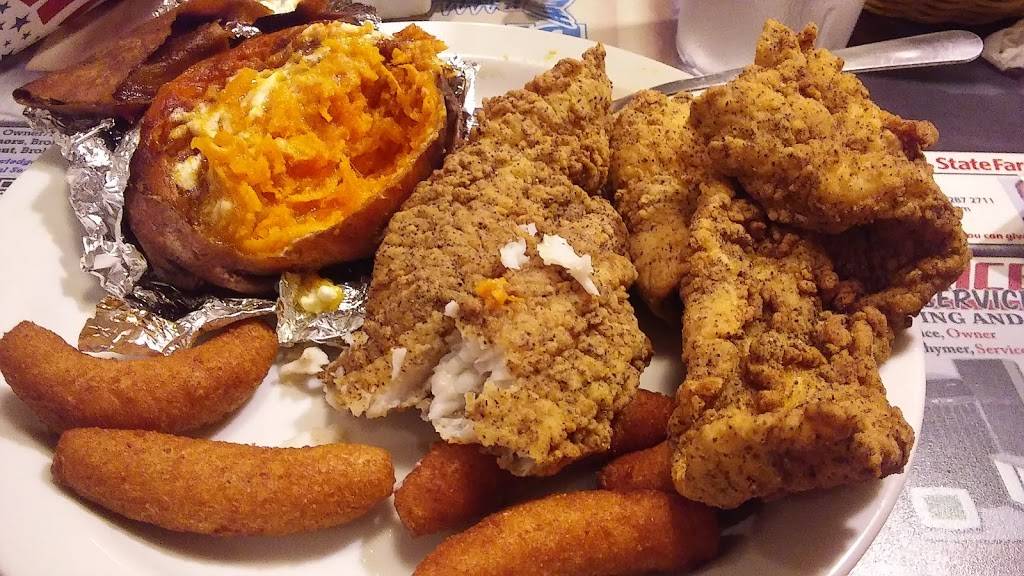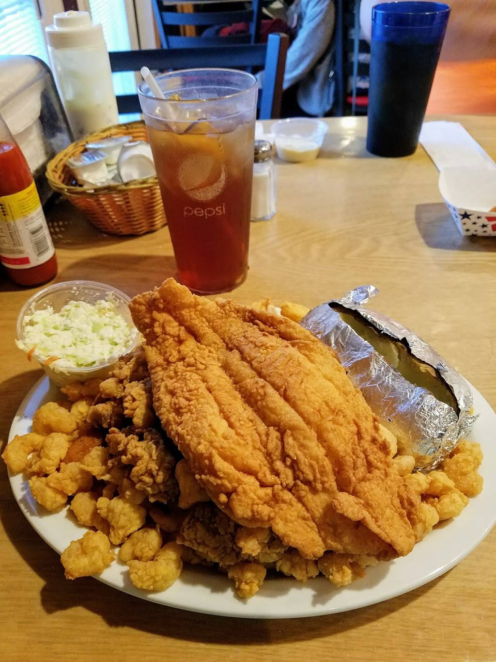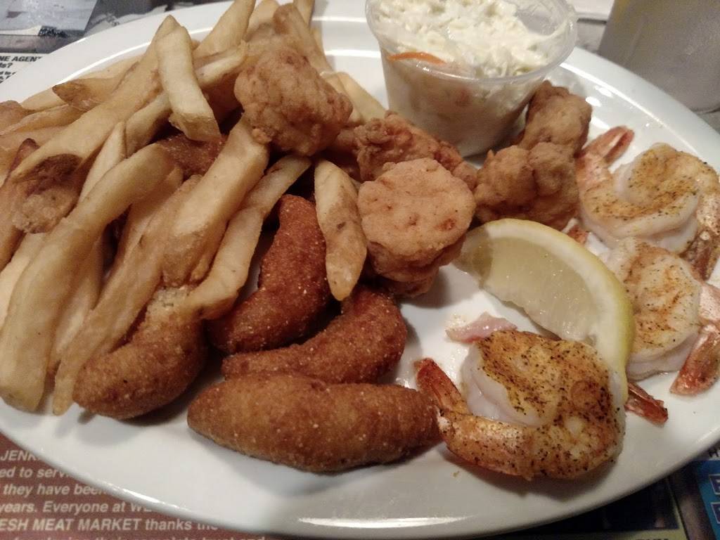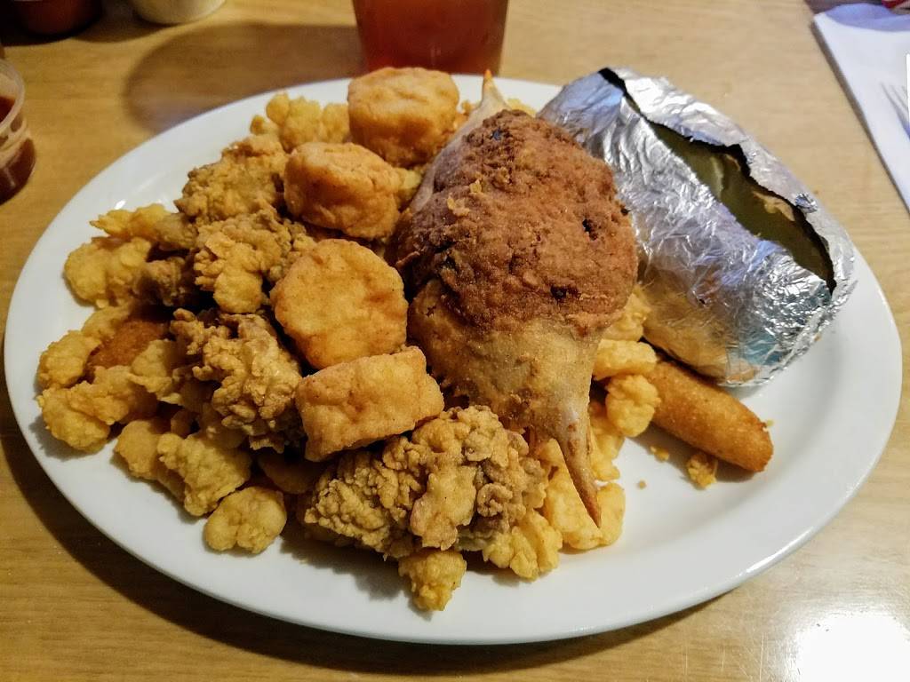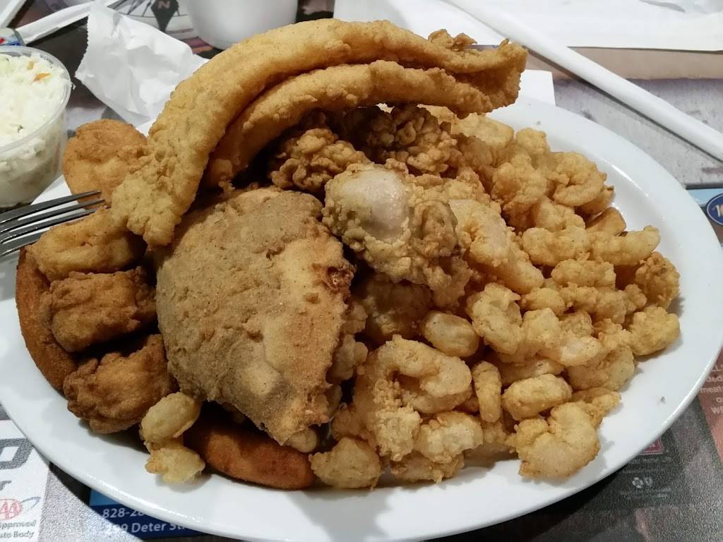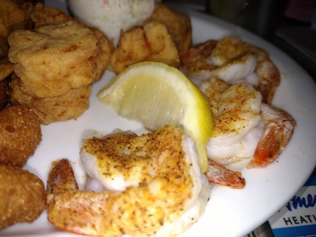 Great service, fun family restaurant. Great prices. Shellfish quality is only good for those who have never had it at the seashore. For example... Way overdone scallops and "jumbo" shrimp are barely "medium.". Good hush puppies. Love the 3-d shark leaping out of the wall in the waiting area. Very organized reception and cash out. Expect a wait, but they move the crowd quickly. Opt for the fin fish, if you know your seafood. Flounder was good. Try the bone-in salt and pepper catfish.
