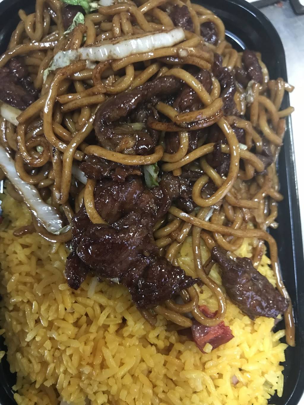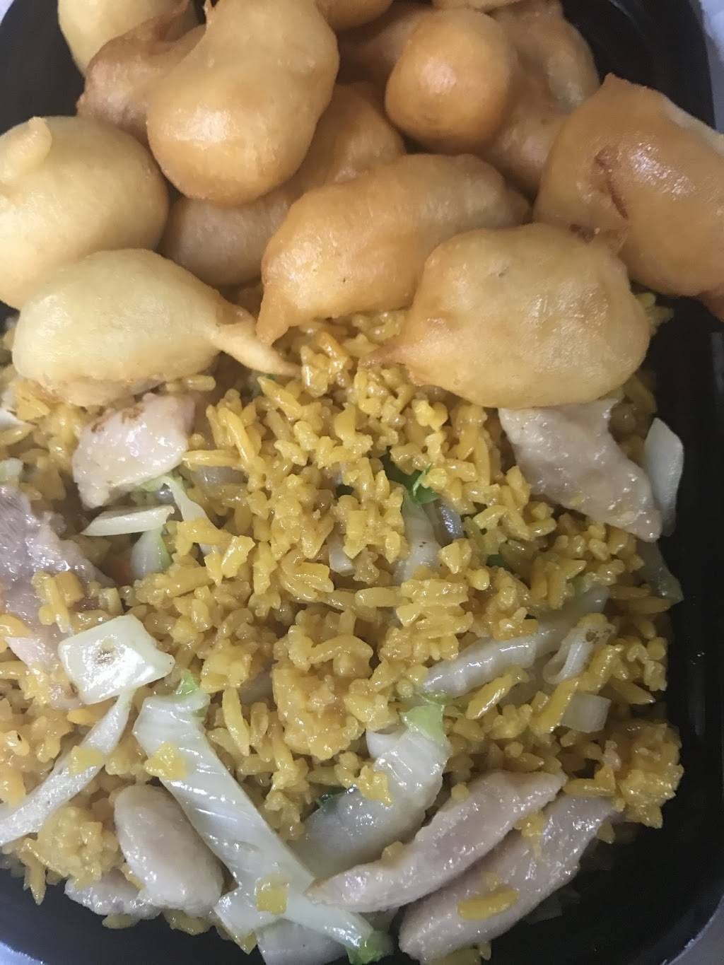 Typical Chinese takeaway joint.It does have a small dining area.