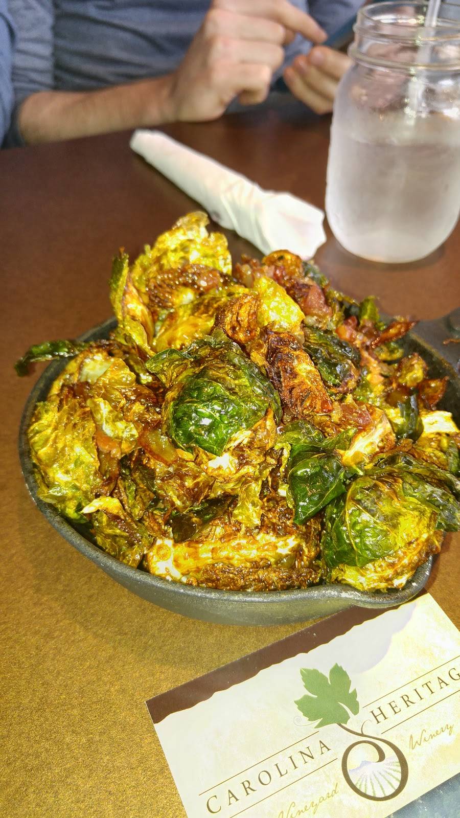 This place was more than we hoped or expected! Everything we ordered was delicious and presented well. We had the fried green tomatoes, redneck salad, crab and red pepper bisque, shrimp and grits, teriyaki salmon, and grown-up grilled cheese, all of them wonderful. Service was excellent and the decor was what I would describe as country-industrial, very pleasing. Loved the Mason jar glasses! We tried to lure the owner/chef to Wilmington and are still crossing our fingers (please, please, pretty please).