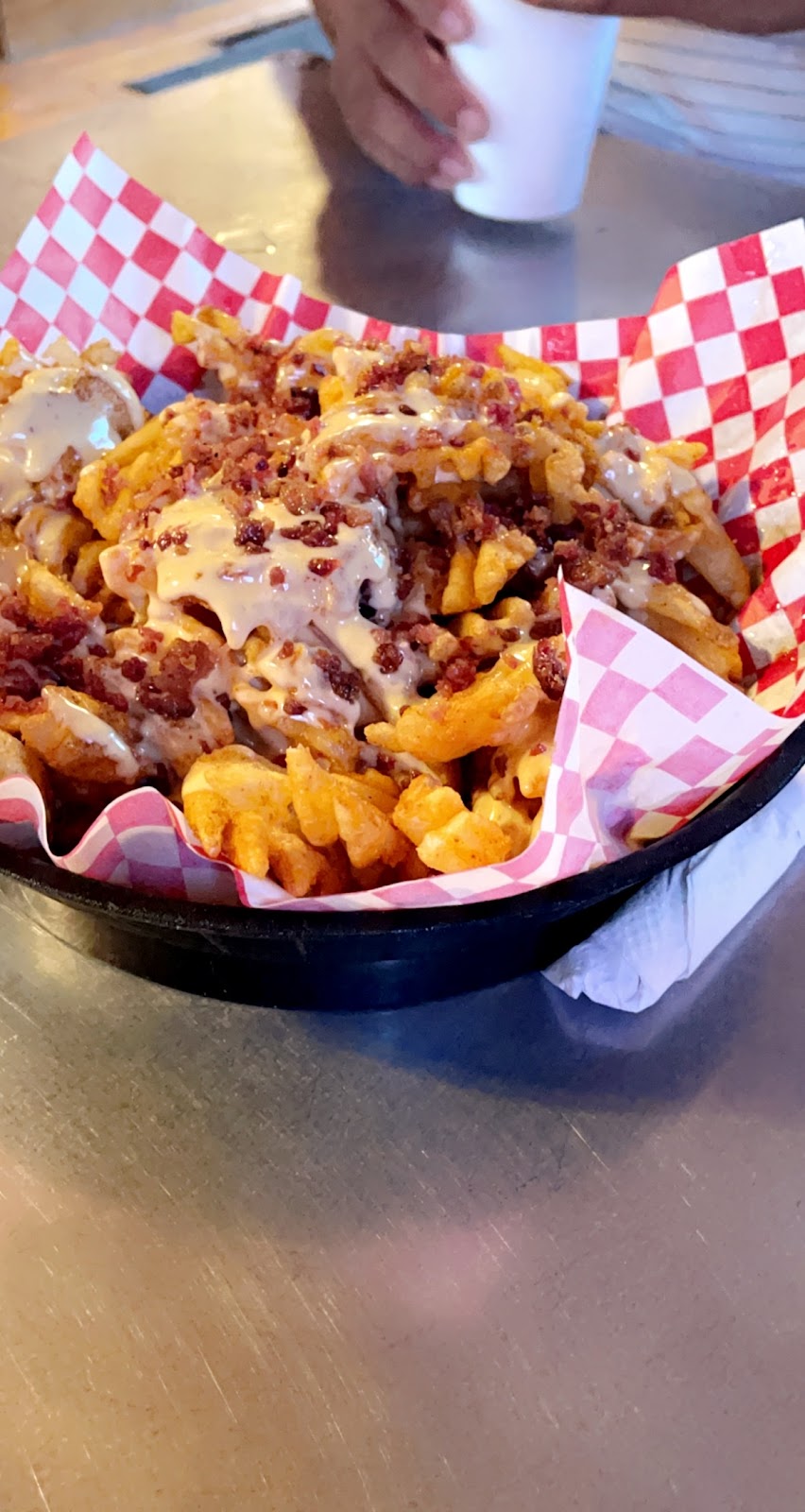 Great lil spot off 74. The bacon cheese fries are dank and the burger was delicious. You could tell the beef was very fresh and quality. Friendly folks as well :)
