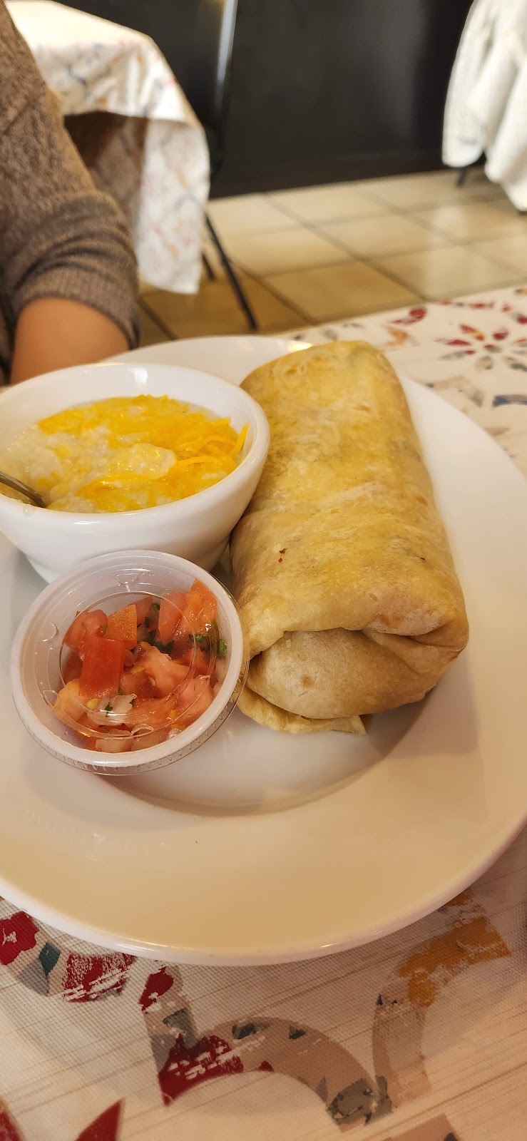 The breakfast burrito was amazing, i strongly suggest using the hot salsa with it. The Vera's Big Daddy Breakfast was good and came with a lot of food. I couldn't even finish my chocolate chip pancakes.