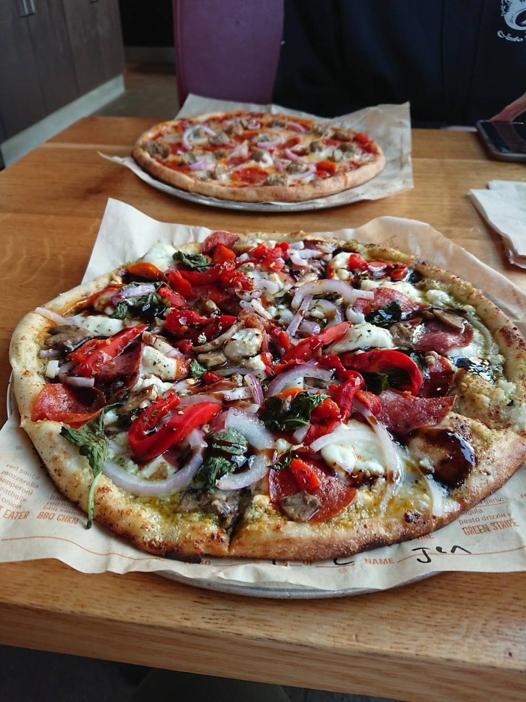 Went here with my wife for lunch and all I can say it was delicious! We got two garlic knots and a pizza (half artichoke and the other pesto chicken). Both were fantastic and we will definitely come back. Your pizza is made right in front of you and baked to order. I would highly recommend!