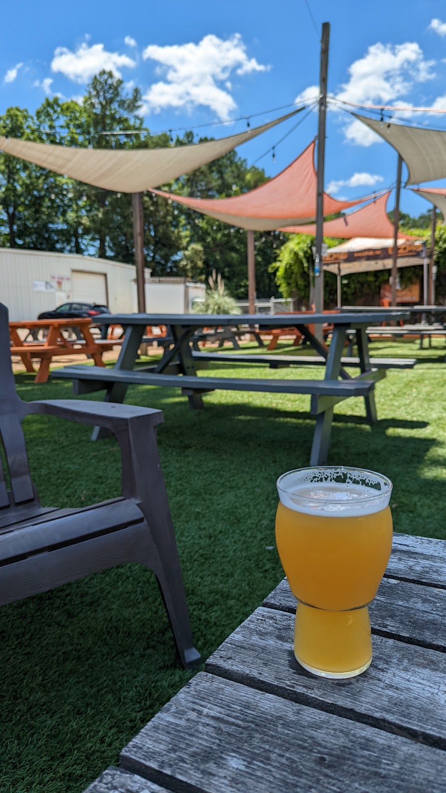 My friend and I were wrapping up the Raleigh Beer Trail, and ended in the coolest place. It's a drive past many warehouses and a lil intimidating at night, but a really cool vibe inside. Their home brews had interesting names like "not" baja blast and 2024, and tasted as it's named. I had the "not" baja blast and loved that it tasted like one with the buzz of alcohol and friend had a coffee based brew that was also great. Def worth checking out especially in the summertime with the outdoor seating area.