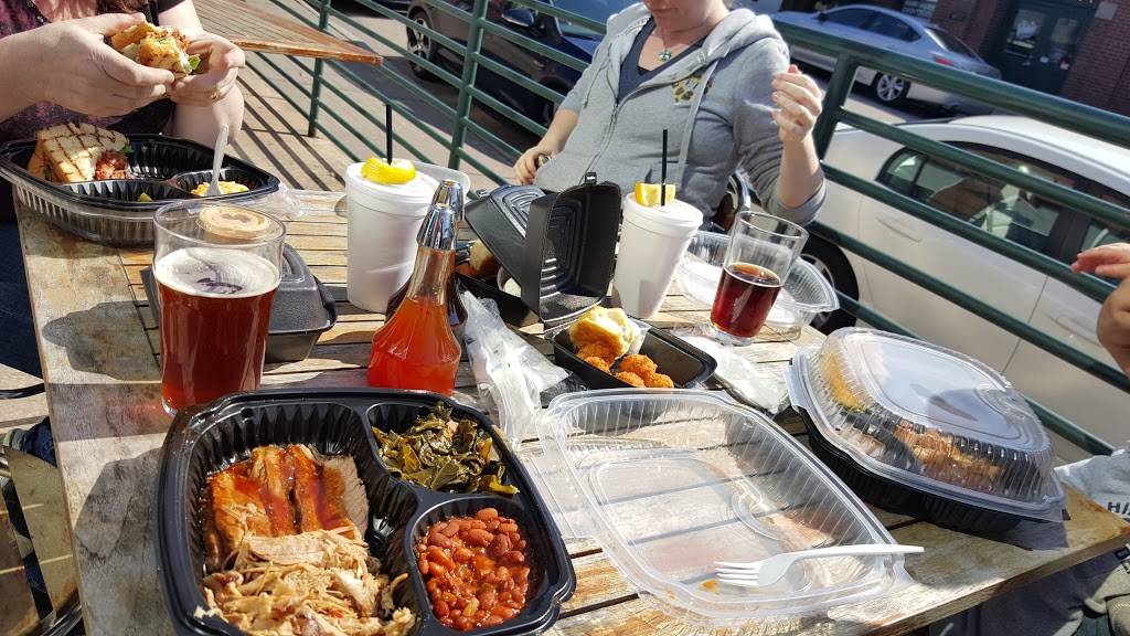 This place is AWESOME!! If you are ever in Raleigh - EAT HERE =) My ribs were fall off the bone delicious. The brisket was tender and sooo flavorful. Hush puppies were the best Ive ever had. Great great food. Price wise, it was not too bad. $15 to $20 a person will fill you up and then some. Atmosphere is college town relaxed but also remains professional. The servers have tried the food and can give first hand recommendations.