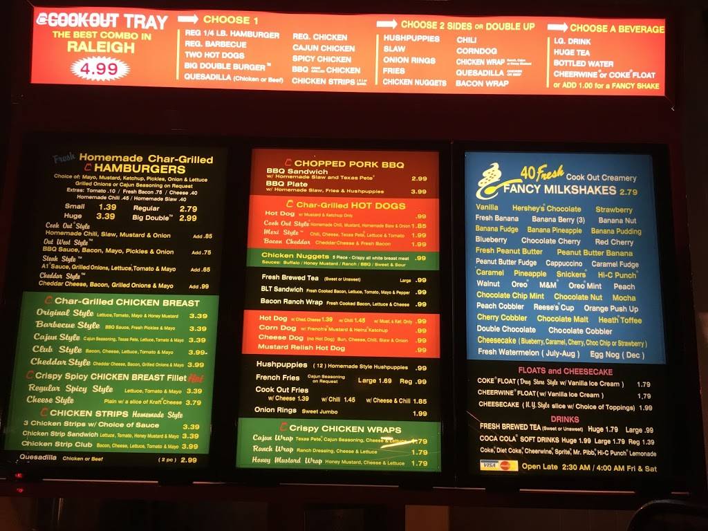 Love "Cookout" period. The "cheddar style" tray is the bomb burger, good combination of onions and melted cheese. Looove the milkshake selection, try a new one almost every or every other time going. Tried the peanut-butter banana and was Not disappointed! Go here often as well as the 40-42 location, and will coring to go back!