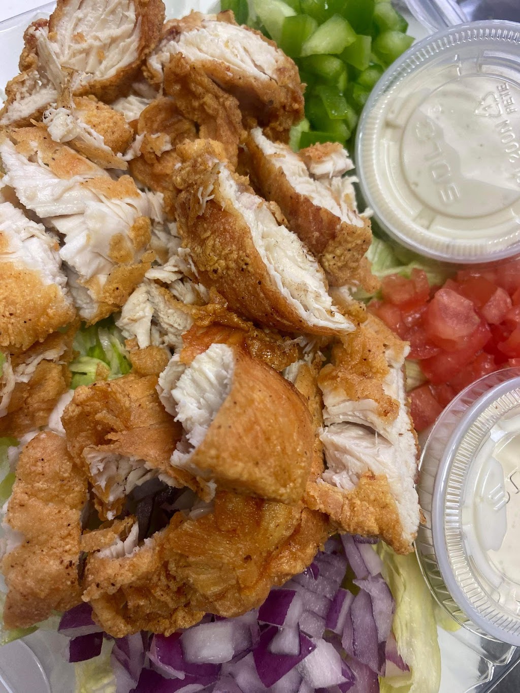 Really enjoyed our salads. Both proteins were delicious (Gyro and Fried Chicken). The tzatziki sauce that's served with the Gyro meat is awesome, and their ranch dressing is homeade. The staff was friendly and patient. Will be back to try the Corned Beef.