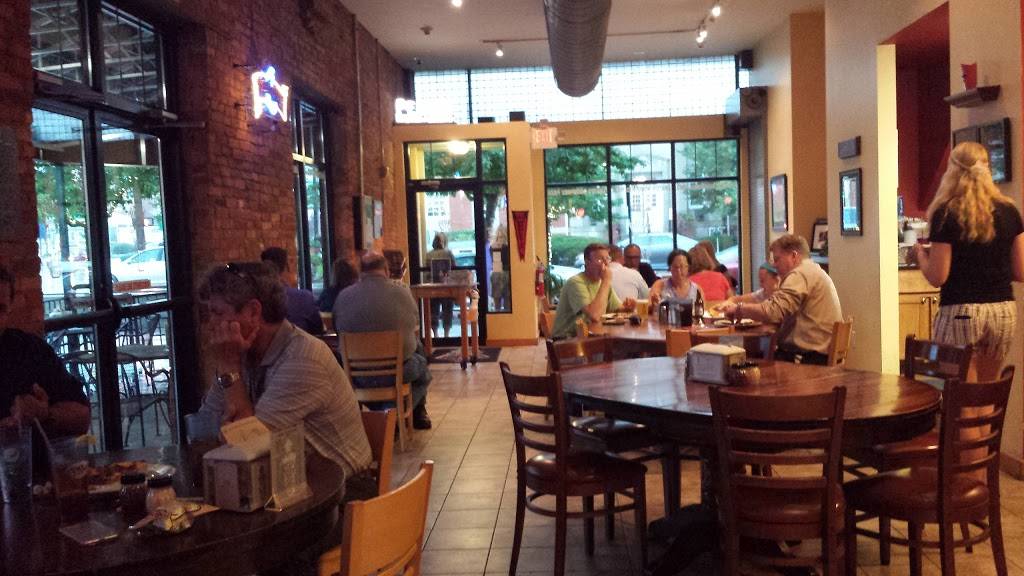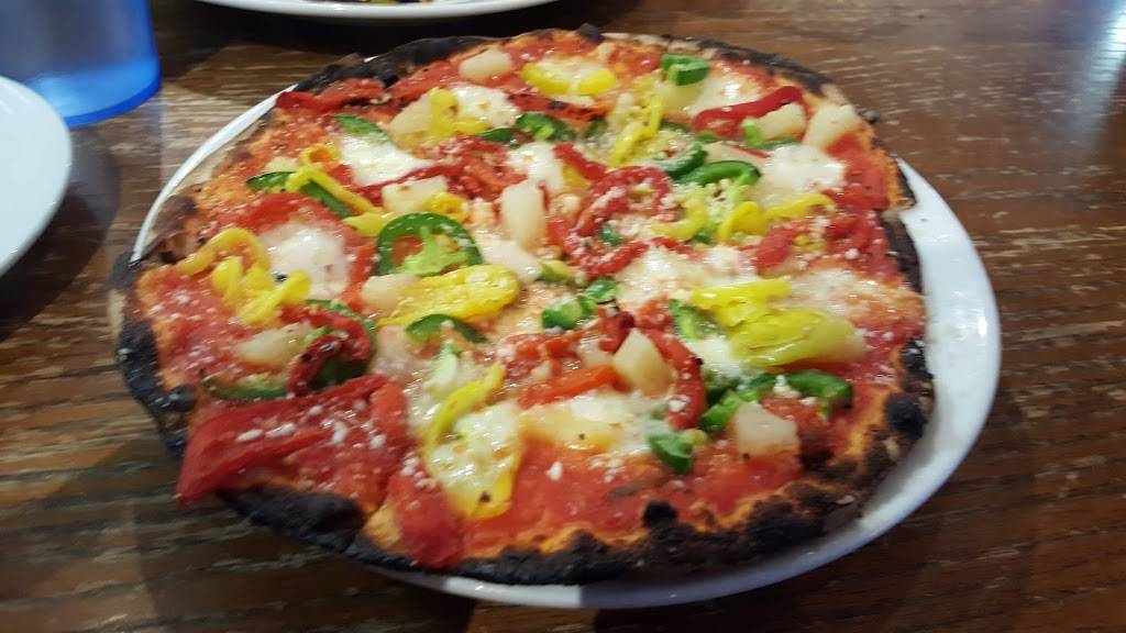 Wood fired pizza. Good interior. For a wood fired pizza, it's pretty good but it leaves me wanting more personally. Fresh ingredients. It's fairly priced for down town. They have drinks too.