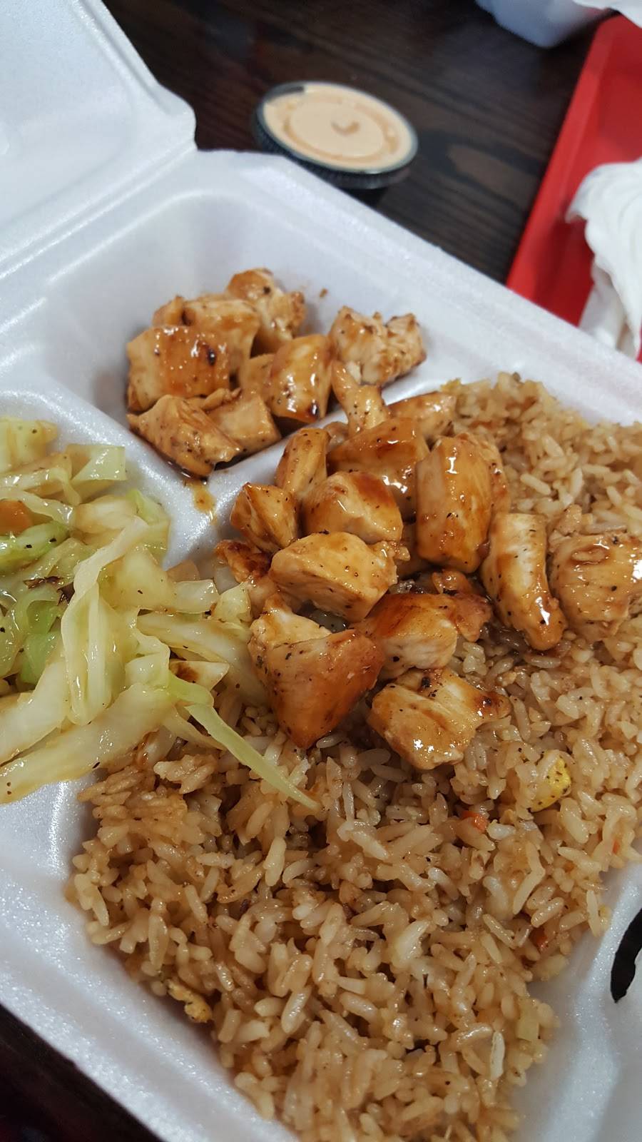 It may not look much but let me just tell you to just give it one try. I promise you cant wrong with the hibachi chicken. This place is so good. Just had the chicken egg roll and it kicks butt!!!