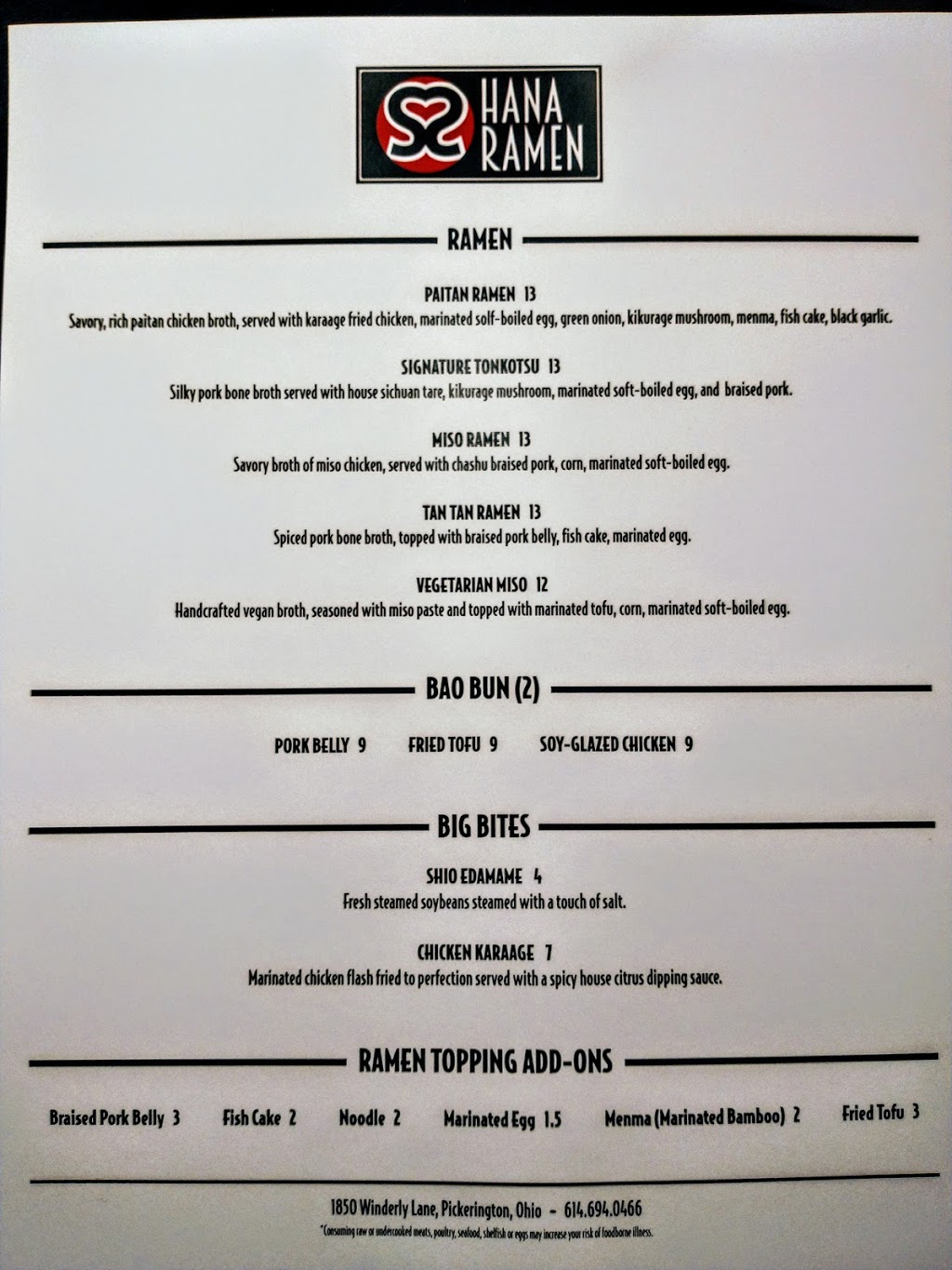 We are impressed. It looked so delicious that we didn't even take pictures just dug right in, and weren't disappointed. We'll have to come back and try the other ramens but we both got the pork tonkatsu broth and it was perfectly balanced. Not too thin, not too heavy- just right. We will be coming back and are adding Hana Ramen to our recommendation list.