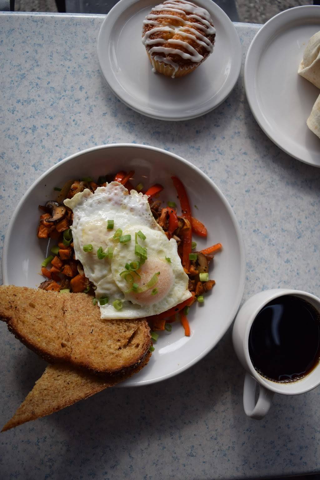 Love the atmosphere here, and great selection of food and drinks. It usually is very crowded though so finding a seat can be somewhat overwhelming. People stay there a while to do work. Love that you can order coffee beans there. Super friendly staff!