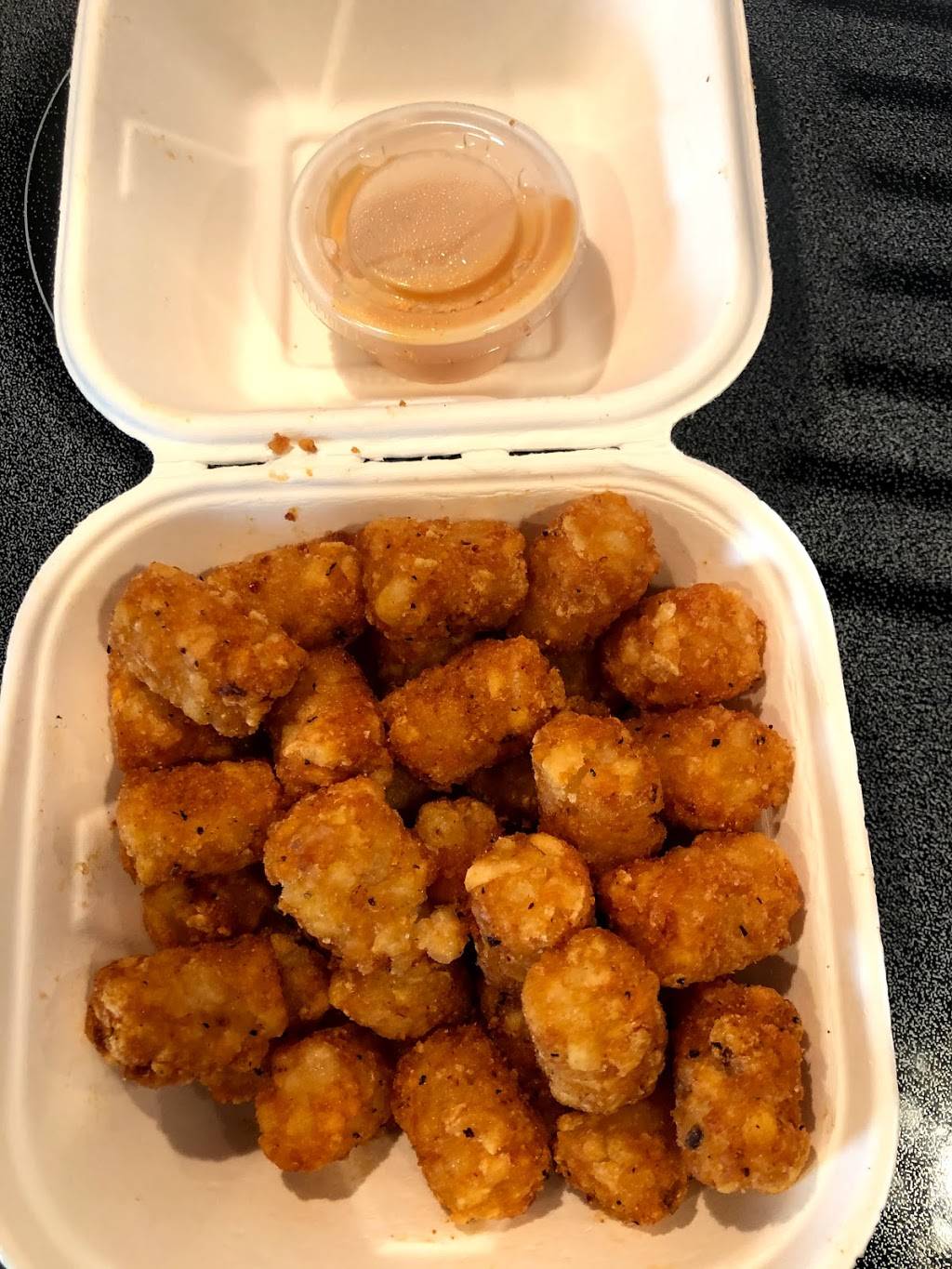 Decided to stop by JD's Secret Stash which was on the other side of town today. Joey and Dave are running the show. As I've read they came from the business world and no longer wanted to work for The Man!! They have been in business for around a year. I thought that I would order the most expensive item on the menu but they talked me into the RB Burger. It's a one of a kind Smash Burger with JD's herbs and spices, American cheese, caramelized onions and their very own Secret Stash sauce. You also get steak and Provolone cheese. Oh MY God!!!!!!!!!!!! You talk about delicious. Juicy wonderful meat on a grilled bun. Couldn't get any better. Of course I had to get the tater tots with their special sauce. The great thing is that they actually give you a huge serving. If you don't get out and check this Food Truck, you are crazy. Just Delicious!!!!!!!!!!!!!!!!