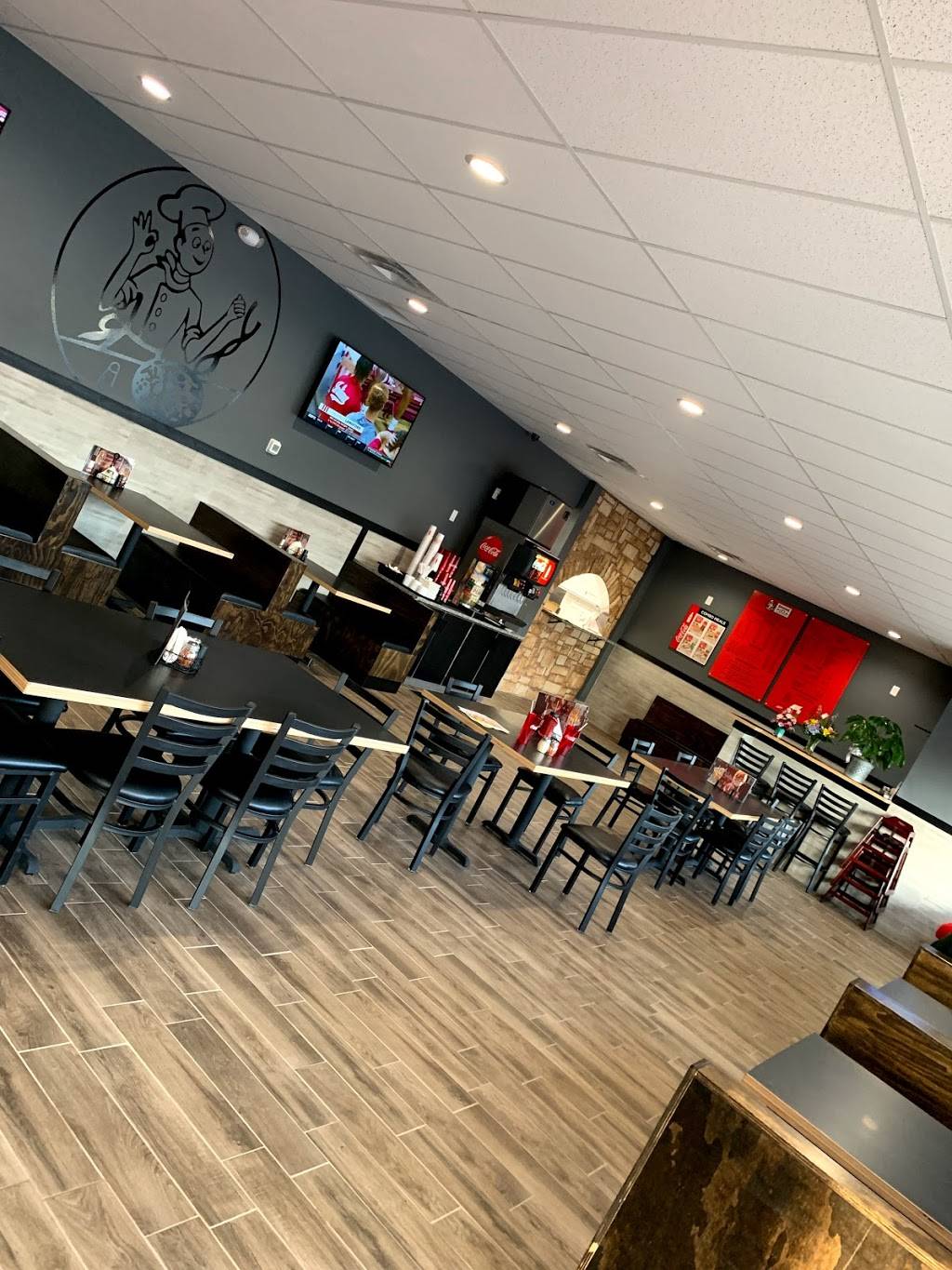 The restaurant is new so is very clean! The staff seems happy there. We ate Calzone veggie, and it was very very good. It could be very fat but instead of, the salsa was light, with right tomatoes and green pepers peaces inside, so delicious ! Thank you! Maybe we waited too much, about 25 minutes, but sunday evening seemed take away busy ! We will come back another day!