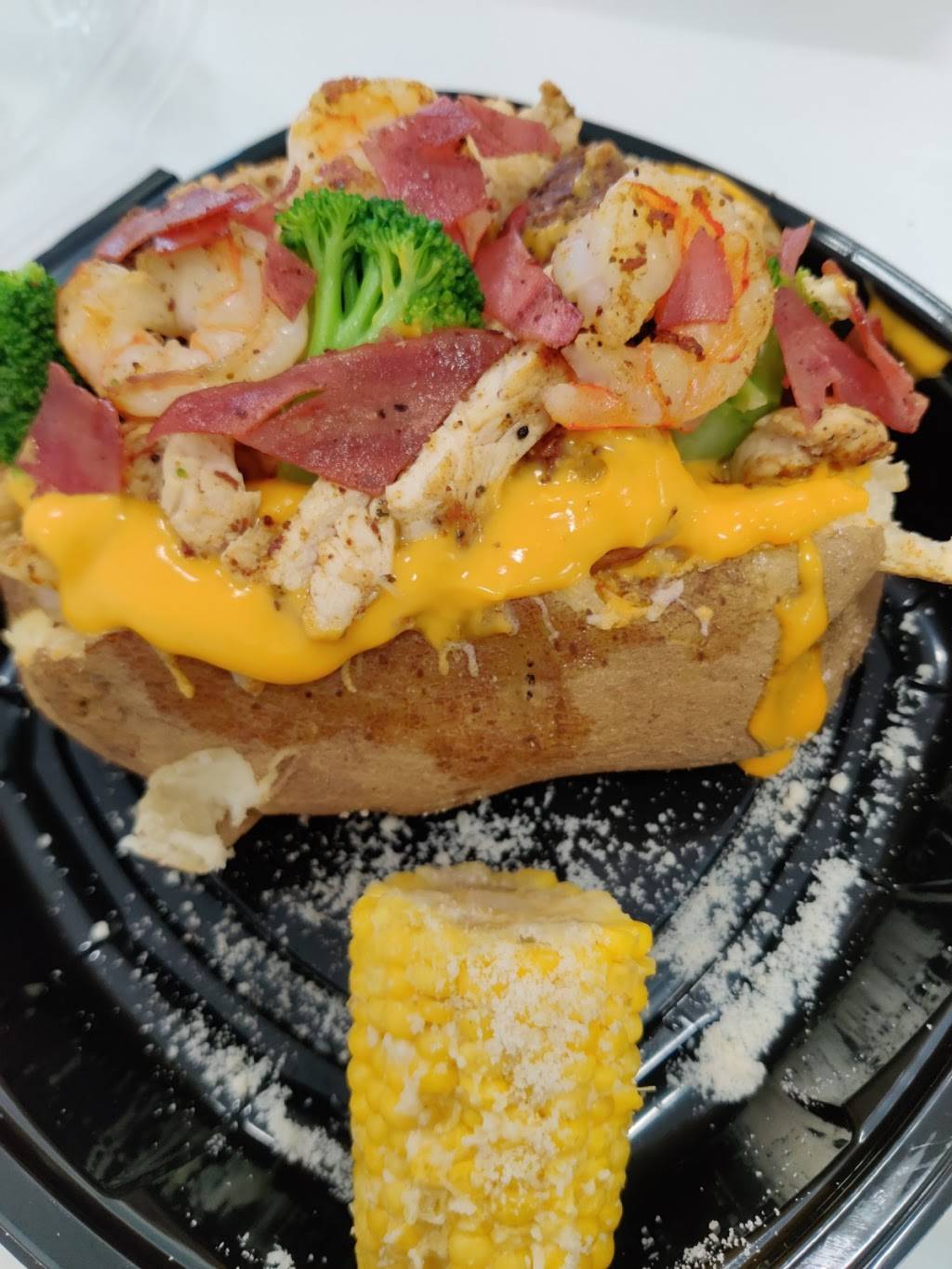I tried the baller bowl loaded potato and corn on the cob. It was amazing and definitely filling. The service was great!