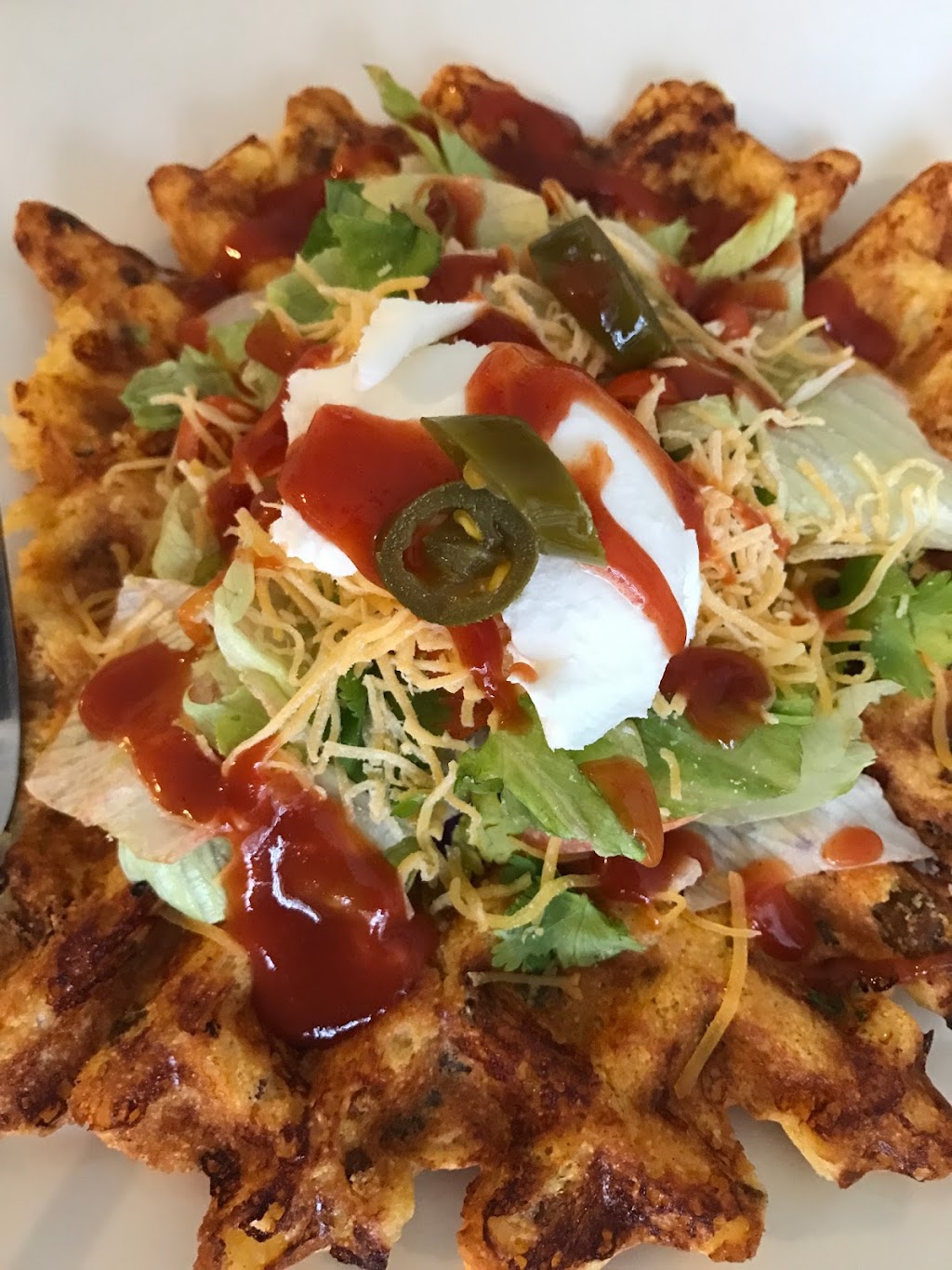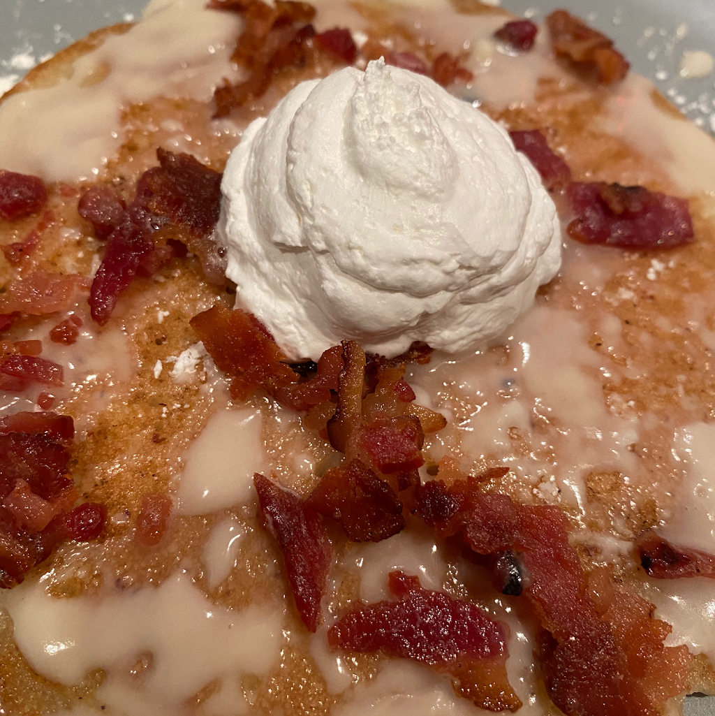Worth coming back. Wireless ordering, followed instruction in the table. Ordered the Breakfast Pizza Waffle, Blueberry waffle, Banana Peanut Butter Smoothie. Their online menu is lacking description like the Breakfast Pizza Waffle’s sauce is sausage gravy. It kind of dry, so I ordered sauce on the side. Topping were overloaded. Combination of sweet waffle and saltiness of cheese, bacon and sausage. Blueberry waffle is has sweet blueberry sauce and waffle itself is sweet too and their small whip cream is really thick. Overall its really good. Next we come back, we will go a as early they open for breakfast on Sunday before church crowd.