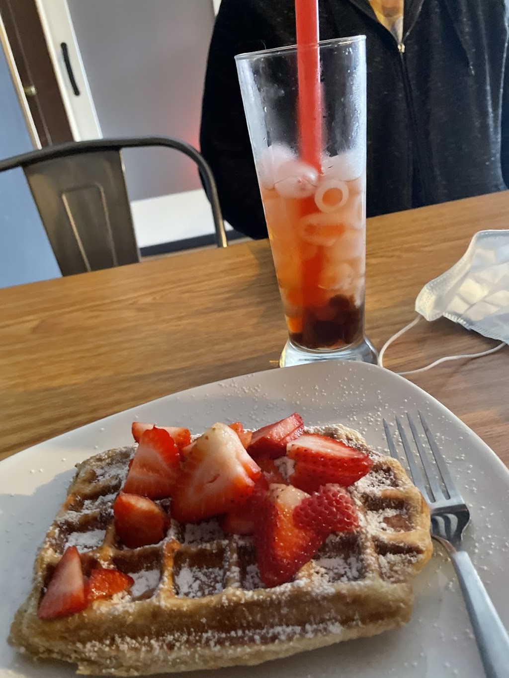 It was our first time going there and it was a bit confusing as to which door was the main entrance. There were signs posted on the outside but they pointed to each other and were not labeled properly. When we walked in, there was no staff around, which was a bit confusing as well. Once in, someone came out of the kitchen area and explained to us that everything is ordered online, once the order is placed and paid for, the food is made and brought out. She was very friendly and helpful. The food presentation was beautiful and the taste was even better. The restaurant set up and way of serving dine-in customers is definitely different. Overall it's a good restaurant with unique waffle creations and we would go again!