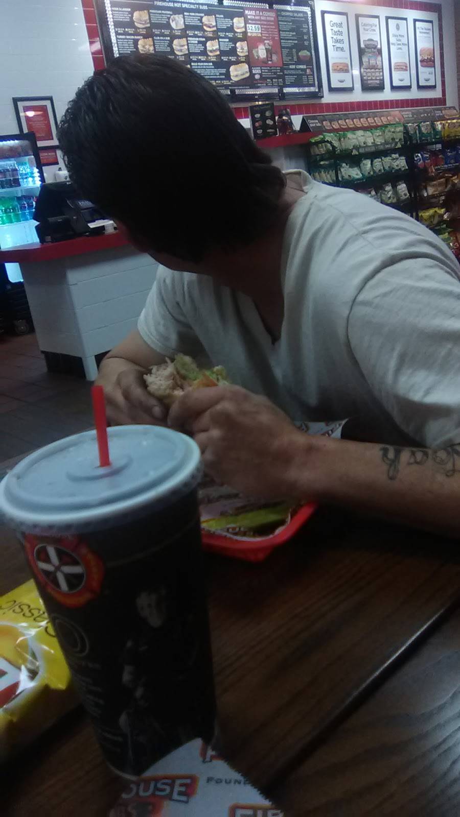 My most favorite place for a sandwich. Part of every meal goes to our local fire dept to buy more life saving equipment. Wide variety of choices from meat lovers to vegan. Salad & chili options too. Free drink refills (dine in only). some deserts. Nice and clean. Additional parking in back with a back door entrance. Public restrooms that are clean. Some what wheelchair friendly, some tables can be moved to make a wide enough space. Staff is super friendly and very helpful. My hubby's favorite items besides food, the collections of hot sauces that you can use to add some heat to your sandwiches.