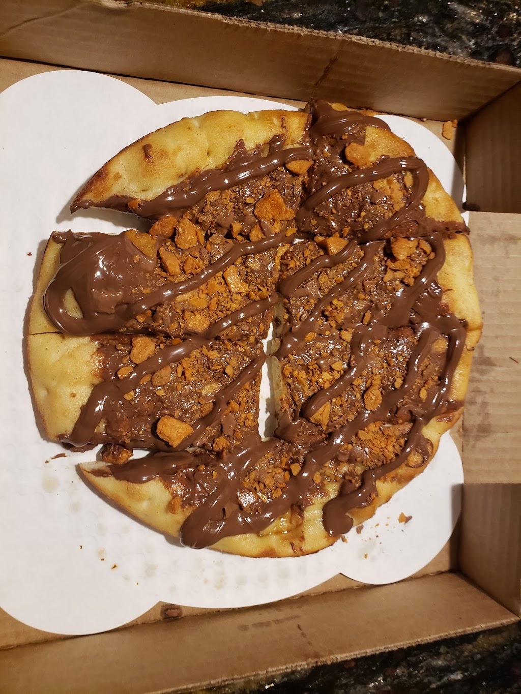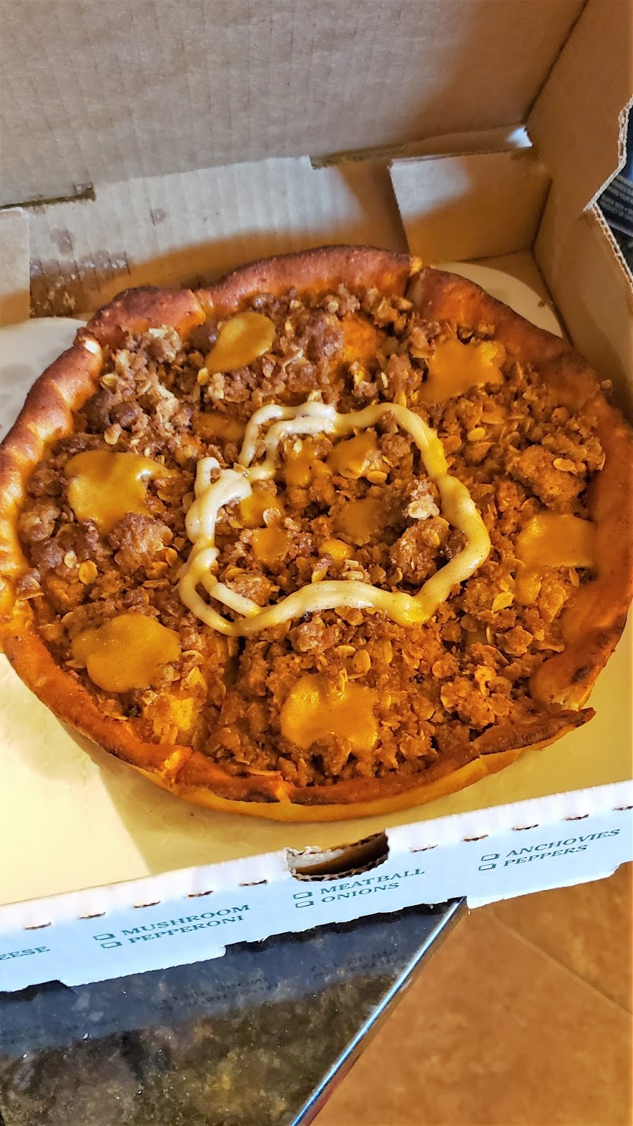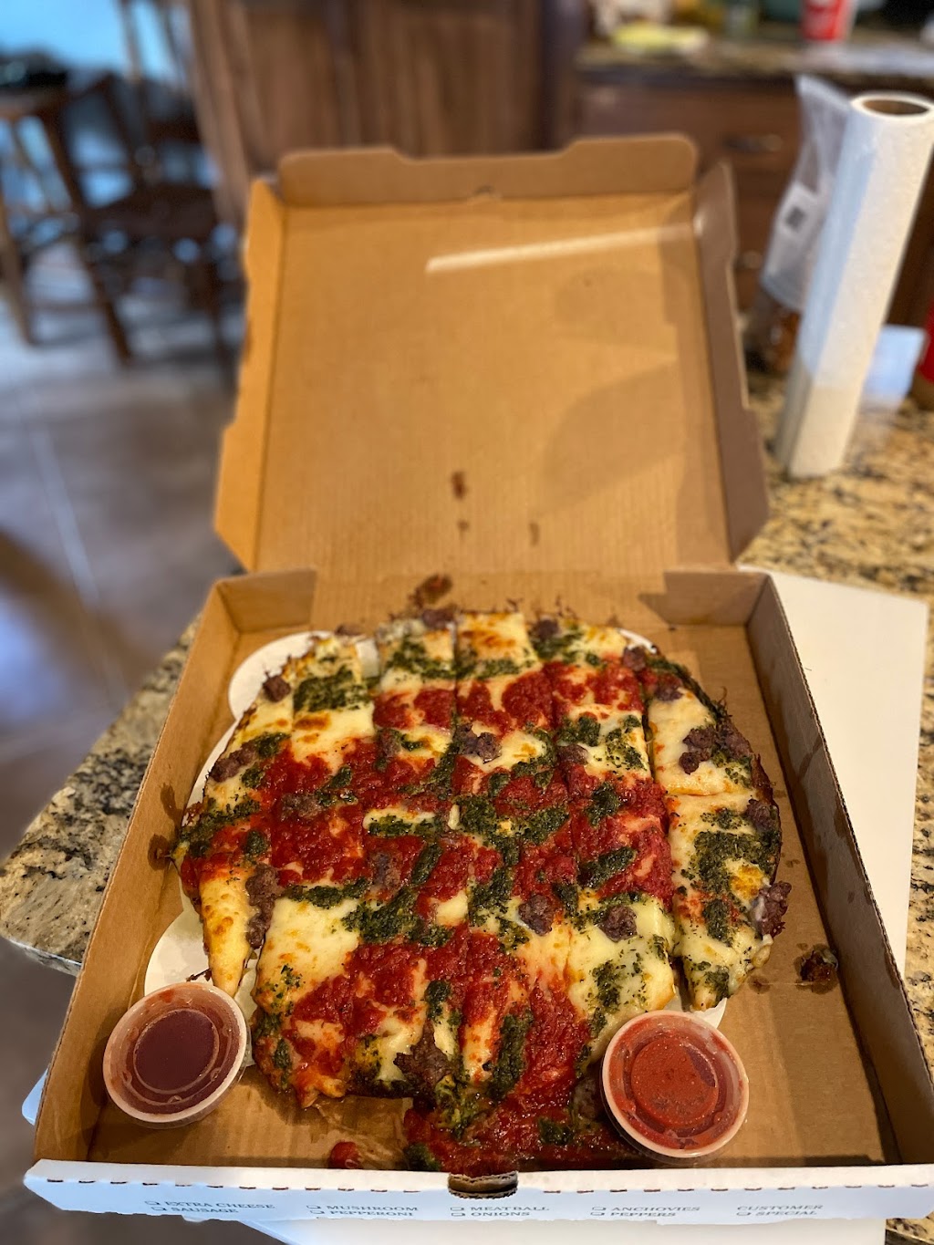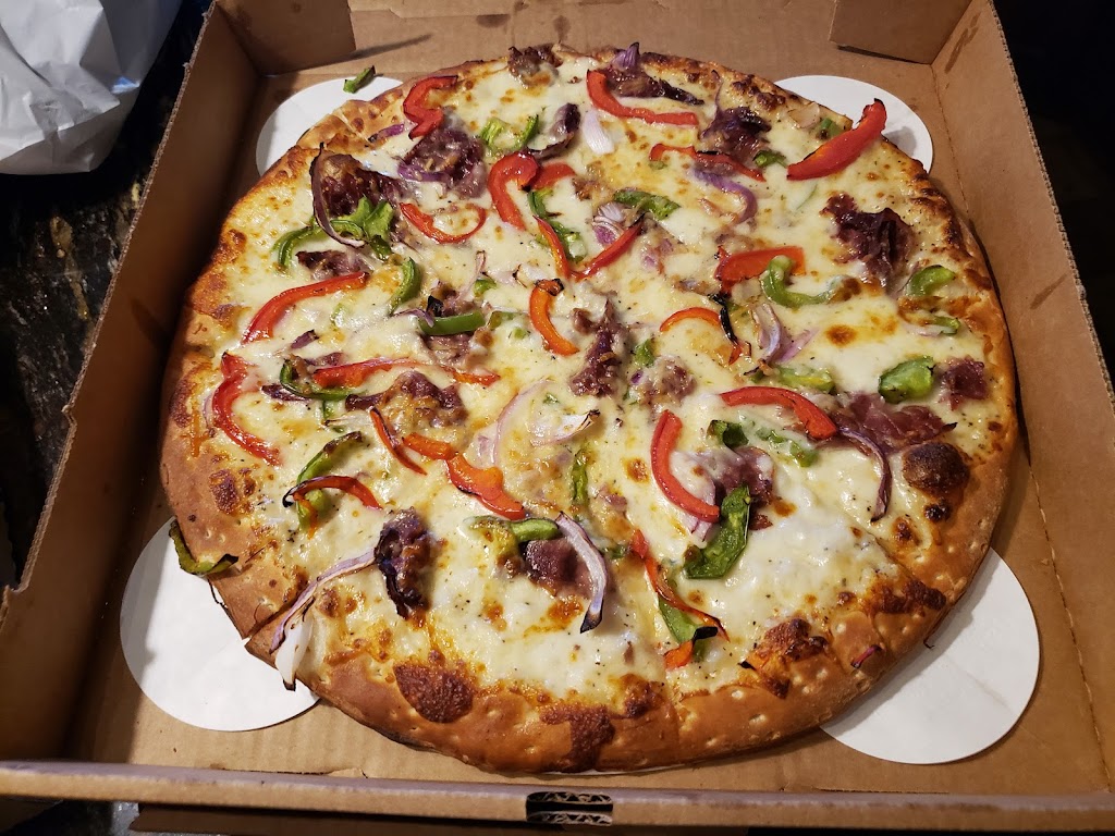 First time here. We ordered online, and went to pickup. It was ready when we arrived and went through drive through. Our entire order was correct. We got 3 different pizzas and they were all amazing! The chicken wings were the biggest wings I've ever seen and they were also amazing! We will definitely be back and telling all our friends!