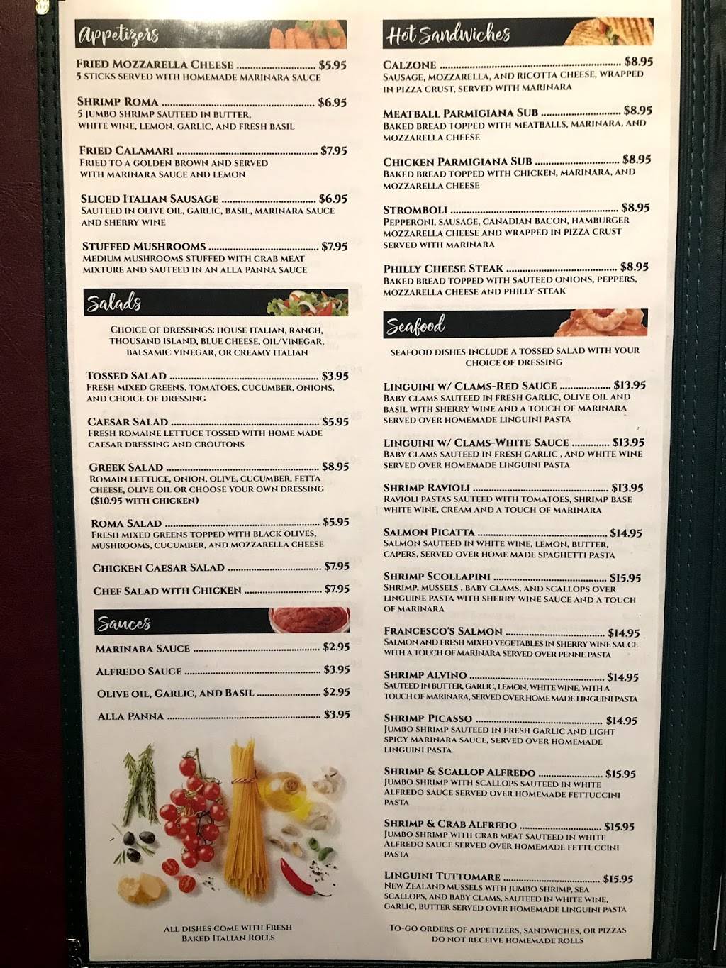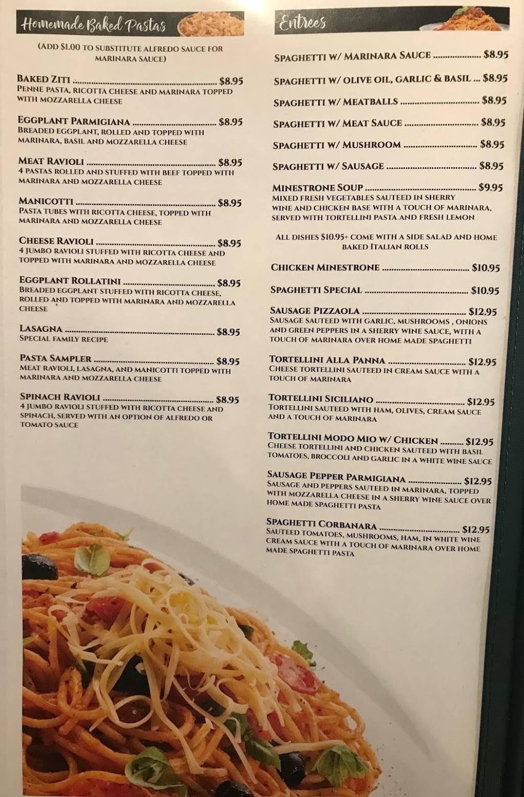 It was amazing home made Italian food. I got tortellini chicken Alfredo and it was the best version of it I've ever eaten. the sauce and the hand made noodles were something not to be missed. I will drive out of my way again to stop here.