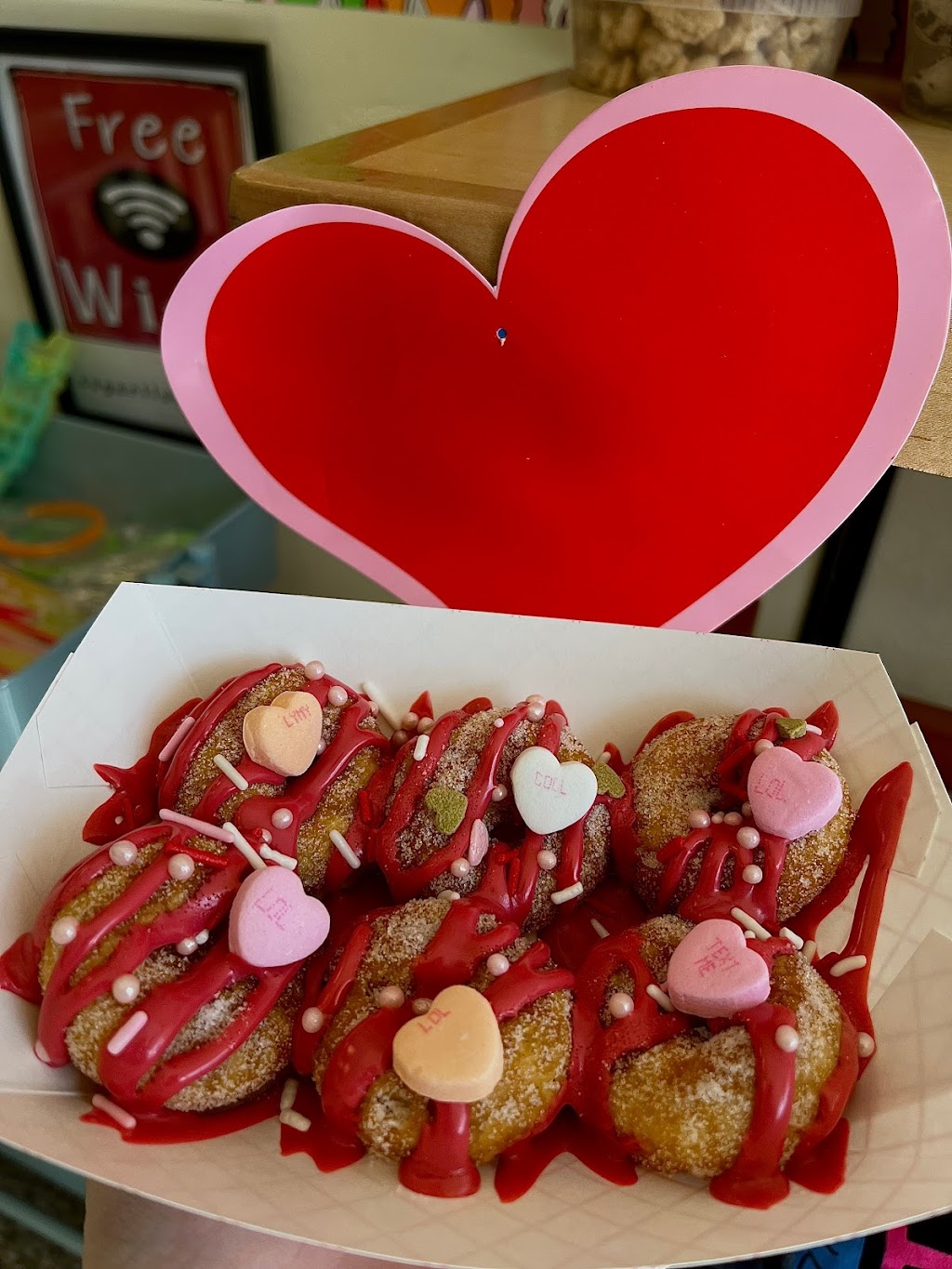 Adorable shop with an upstairs to hang out, play games or read a book. Custom made donuts, fancy coffee, lunch, ice cream, this place has what you want! I mean really, where can you get a custom made mini donut 🍩? HERE, that's where! The Boss Hogg is mapley bacon goodness! Stop in, you won't be disappointed, I promise!!