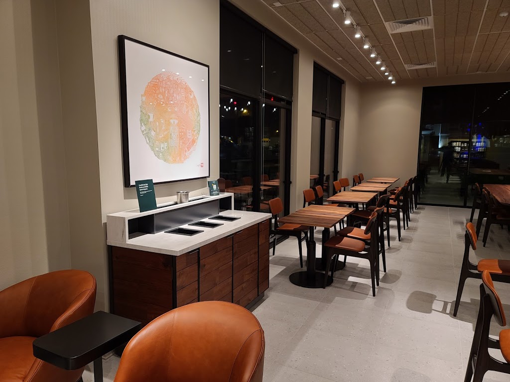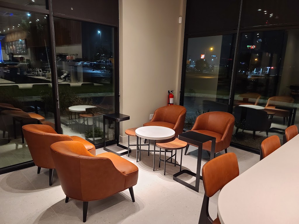 This location is relatively new, so it isn't constantly swarmed with people...yet. I believe it is take it only. I have only ordered ahead from here, and my drunks are always ready before I show up. A little annoying having to go through the drive thru, though and wait in that line, but the lines aren't too long. I have found that drinks I'm wanting to order are out of stock or not available about half the time, and I haven't figured out the pattern yet. I usually have enough options that I can find something else.