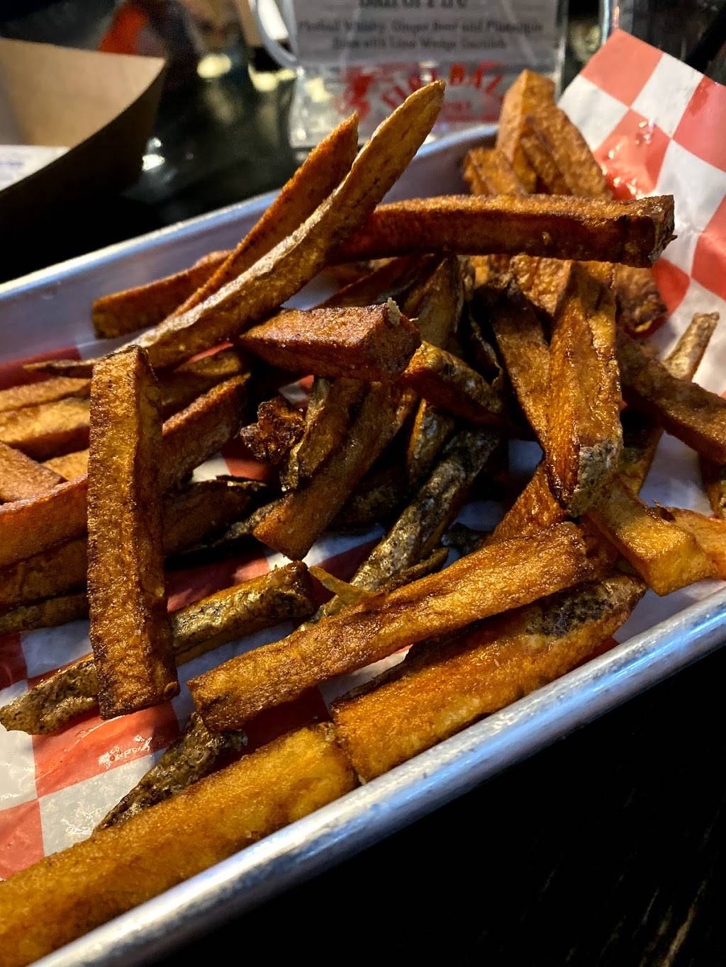 The spicy hummus was a delicious appetizer! If you are looking for a nice drink, the Adult Capri Sun is a good choice, and the wings aren't bad either. All around pretty good place in a new location. I'll be trying the wedge on my next trip!