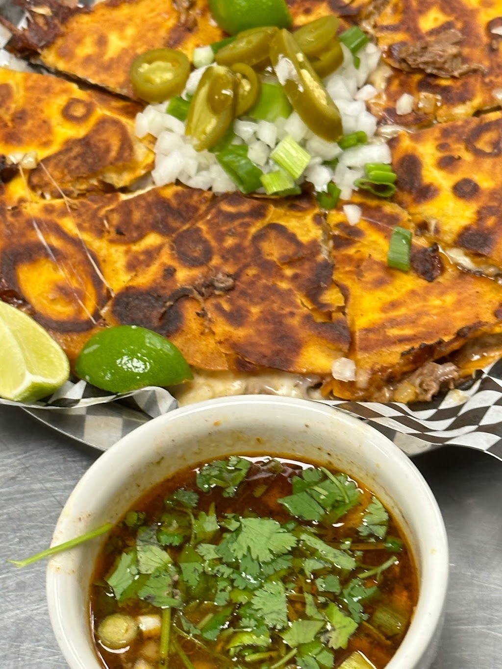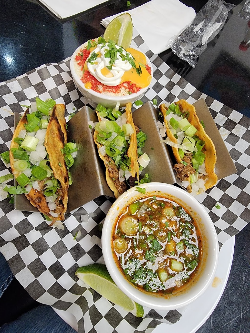 Busy at Lunch time , cozy seating , friendly atmosphere. Birria consommé is outstanding. Full of flavor !! Sides , rice , beans, Mexican street corn are all amazing. My first time visiting. I will definitely be back. Slap the table good !!