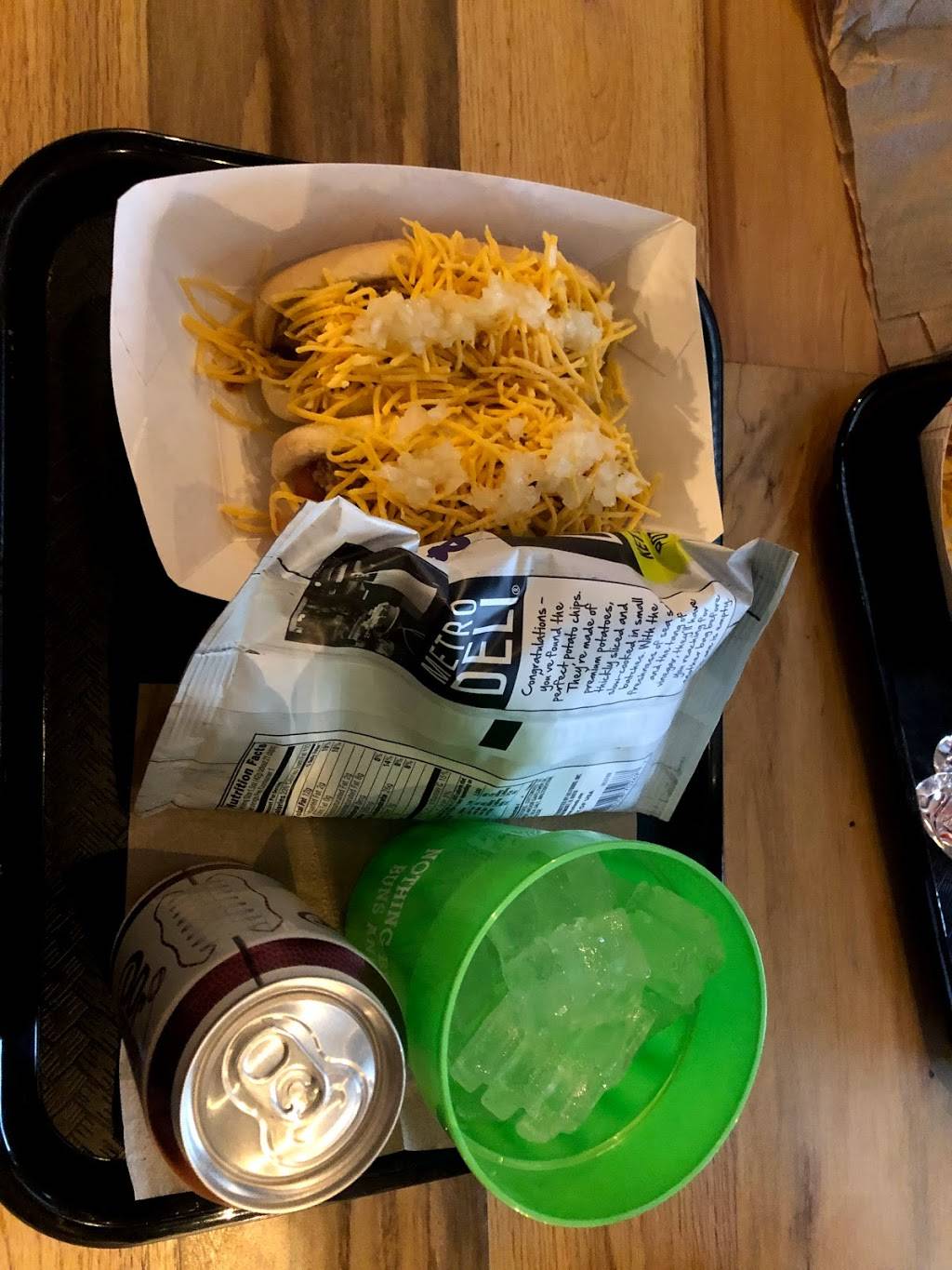 The hot dogs are tiny but tasty! Loved the taco!! Cute place to go. Order a beverage, you get to keep the cup!! Highly recommend.