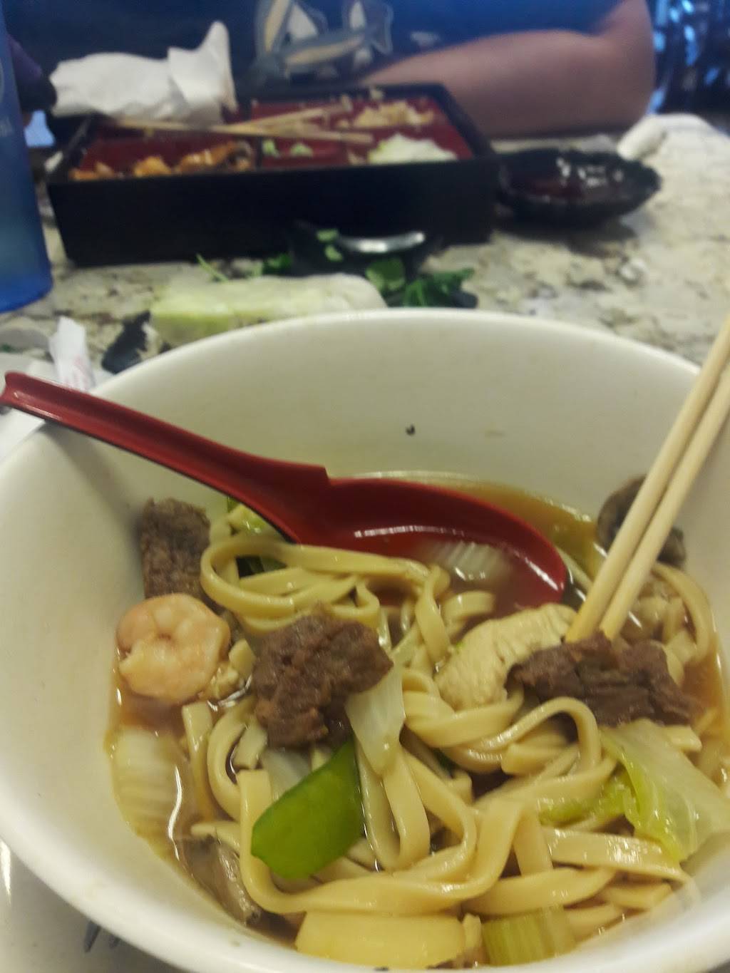 Seems to be a Chinese attempt at Japanese Bento Box. They do not offer Shrimp Tempura (long, crunchy sticks you pickup and eat with your hands, google it) which is a necessity for any Bento Box fare, EVERY city I've had Bento in has the shrimp tempura, tempura veggies, etc. NOT these folks! Major disappointment, I'm sure they could figure out how to do them but it's not the real deal if you know what I'm referring to. So I ordered a hot beef dish, it was good/fresh/crisp but a tad too much heavy gravy. YMMV, depends on your taste since I'm from New York. I think this is GOOD Americanized Chinese food, Japanese? NO, not really. Earns an extra star for being a VERY CLEAN establishment.