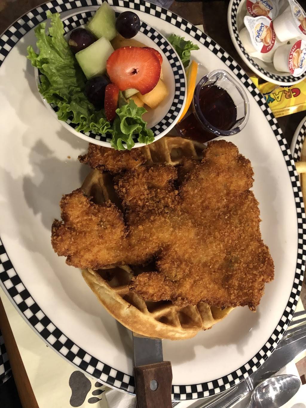 Dinner was very good, I had the waffles eggs and bacon. Bacon was divine. Service was friendly and attentive. Everyone enjoyed their food, the pot pie and roasted chicken were the other plates ordered. We will be back.