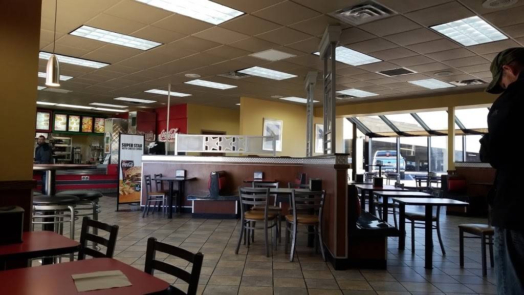 I take your order at the counter and you get a number and they bring your food out to you which is pretty nice. Then they have choices on food for the you want ground beef or ground sirloin burgers which is a nice choice. They have fountain drinks you can refill yourself. I haven't tried any of the Green burrito stuff yet but it's probably pretty good too. If you're hungry not too bad for a fast food restaurant. I recommend this one here.