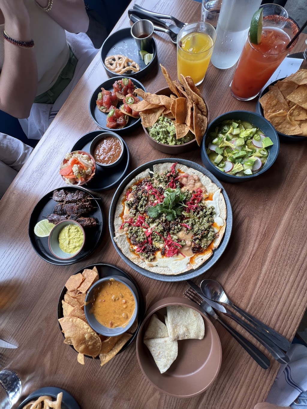 I went to Noches on a recommendation of a friend on my visit to Tulsa. Where to start! First, LOVED the decor! The vibe here is really great. Clean tables and vibrant colors. The highlight was, of course, the food! I was compeltely blown away by the quality. I highly recommend THE MEATS 🍖. It's corny, but I had to give my compliments to the chef (Chef Marco). And finally, the service. The experience was elevated to a whole new level when I ordered the agave flights. Alfredo, the bar manager, gave really cool and deep tidbits about the flavors and knowledge of the drinks, which made it that much special. And of course, our server, Becca, kept the fun and drinks rolling. 100% will be back 👍