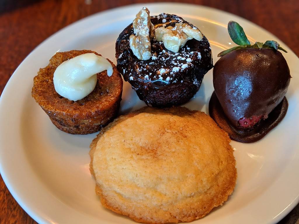 We have been here many times but it seems like the place has gone downhill some. Parking lot area could use some work, muddy area by front row parking spots. After going in waited for 5 minutes before anyone acknowledged we were waiting. They seemed very short staffed. Was told 15 to 20 minute wait even though the restaurant was half empty and we ended up waiting about 15 minutes for a booth even though there were plenty of them, we almost walked out because of the wait. When we got seated one of the booth seats had about a 18" long rip in it with tape on it that has come loose exposing the rip, looks very tacky for higher end restaurant like this. Calamari was excellent, rib eye steak was over cooked but still good, grilled vegetables were good. Chicken tenders crust was way too hard, some