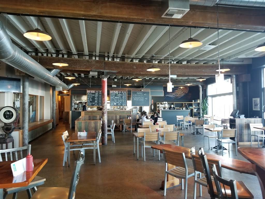 I ordered the Buoy Salmon Burger, which was delicious. I got the optional crinkle-cut sweet potato fries with it, which was an amazing pairing. At about 2pm on a Sunday, I had a 20-minute wait for a table, and it was well worth it. The waiting area, on pilings above the river, has a glass-bottom floor where you can see see lions hanging out a few feet away! It you are lucky enough (or are prepared to wait long enough) for a river-facing table, you will have an absolutely amazing view. Great beer selection too.
