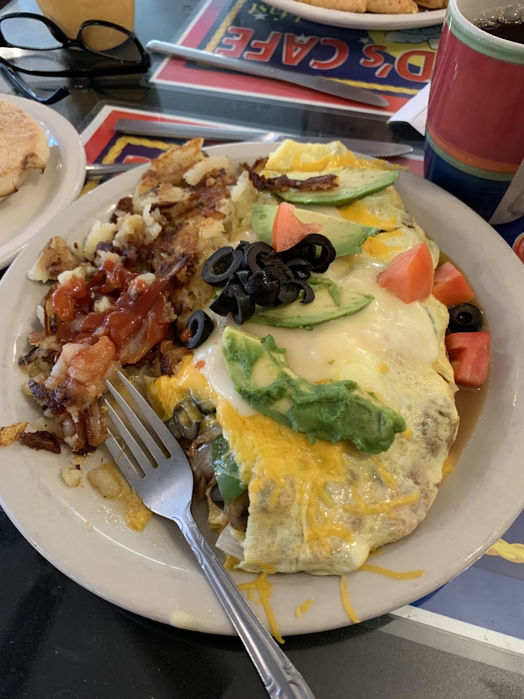 We both had these amazing omelettes!! Breakfast, coffee and wait staff were fantastic!! Very comfortable Cafe that Turtle Rock RV had suggested to us. So happy they did!! We will be back!!
