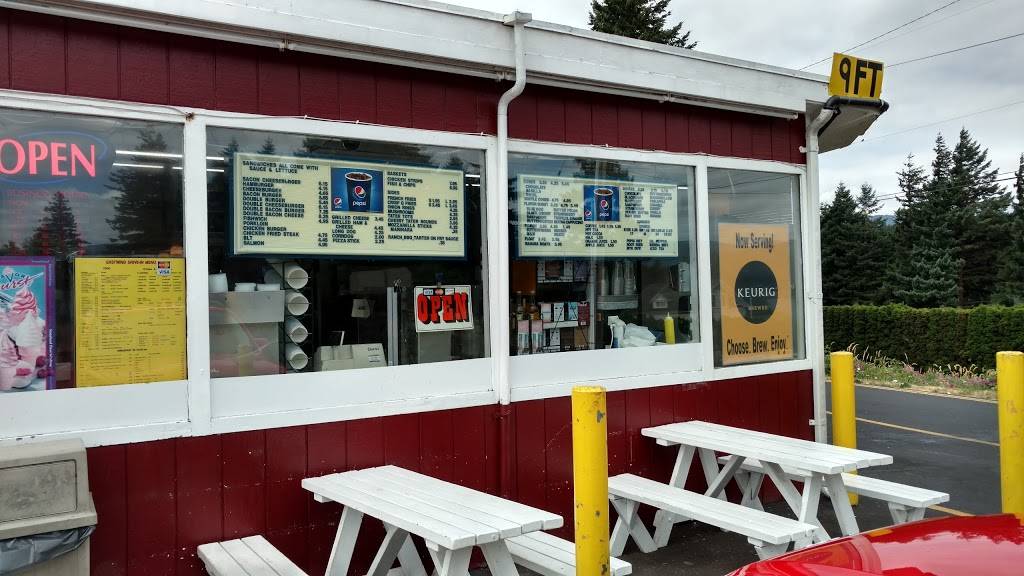 Best Drive-in in the gorge. They are open from 7AM (7:30AM Sat-Sun) until 6PM. They serve breakfast as well. Long lines in summer, but goes fast. Has limited seating, there is a counter inside you can sit at or you can sit outside at the tables next to the building. I always take my food to thunder Island on summer days. There is also a drive thru, if you chose to go that route. There servings are huge!! When getting Ice cream get a small or kids sized. Prices are OK.