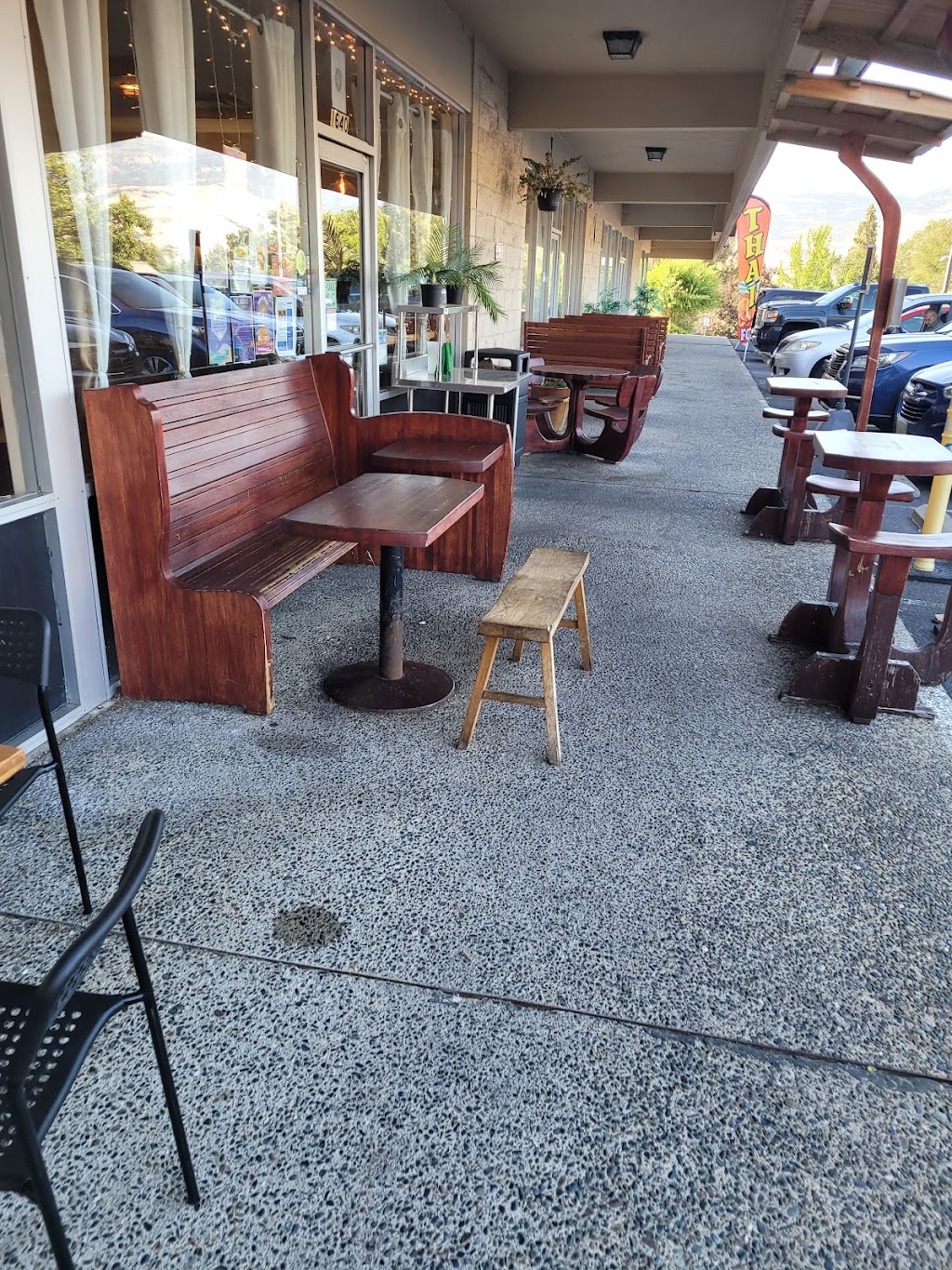 Any restaurant that has vegan and gluten-free options deserves four points, in my opinion. I couldn't, unfortunately, give it five. I was disappointed that all of the meals had grain in them. I had to order individual items a la carte. Then, when I got them, I was surprised at how small the containers were. The tofu and roasted veggies were good. The Miso soup tasted like celery, not me so, so I wasn't thrilled with that. Overall, I would eat there again but would prefer to find some place with full meals. Props to them, though, for using good ingredients and making whole foods! Oh, also, they have quite a few tables for outdoor dining. Look like six or seven...