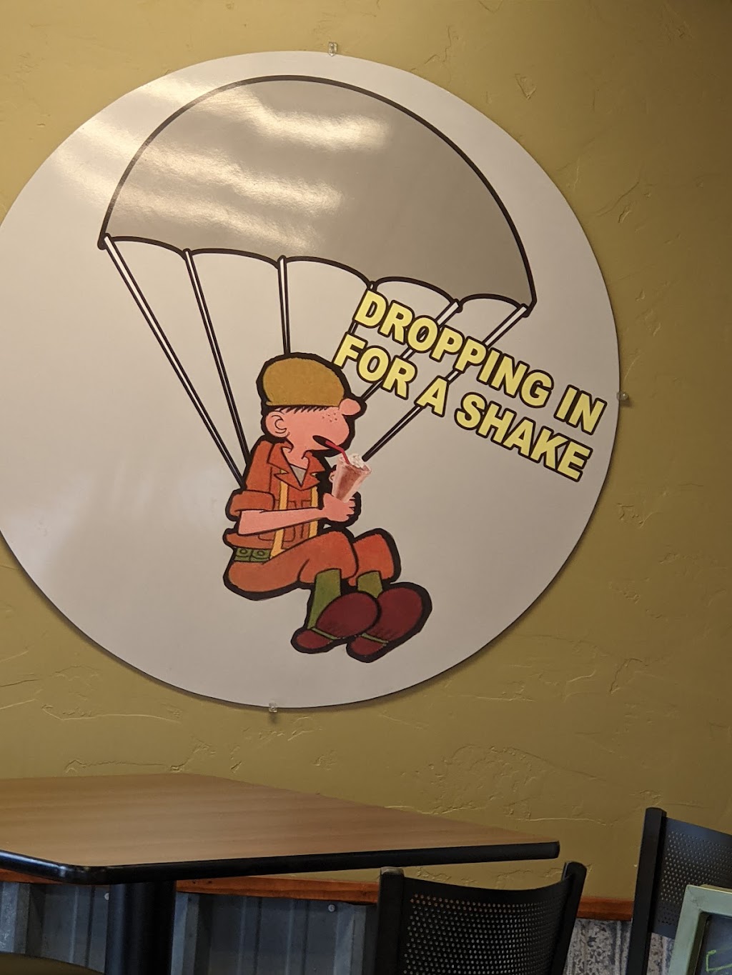 Old fashioned style burger joint. Very clean. Friendly caring service. Cute decorations. Yummy, fresh, custom made burgers, hot dogs, Sandwiches. Fries are hand cut. Onion rings are fabulous. Hand made shakes. Everything here is reasonably priced. Drive through or walk-in. Worth a short drive off highway 97. You can also call ahead.