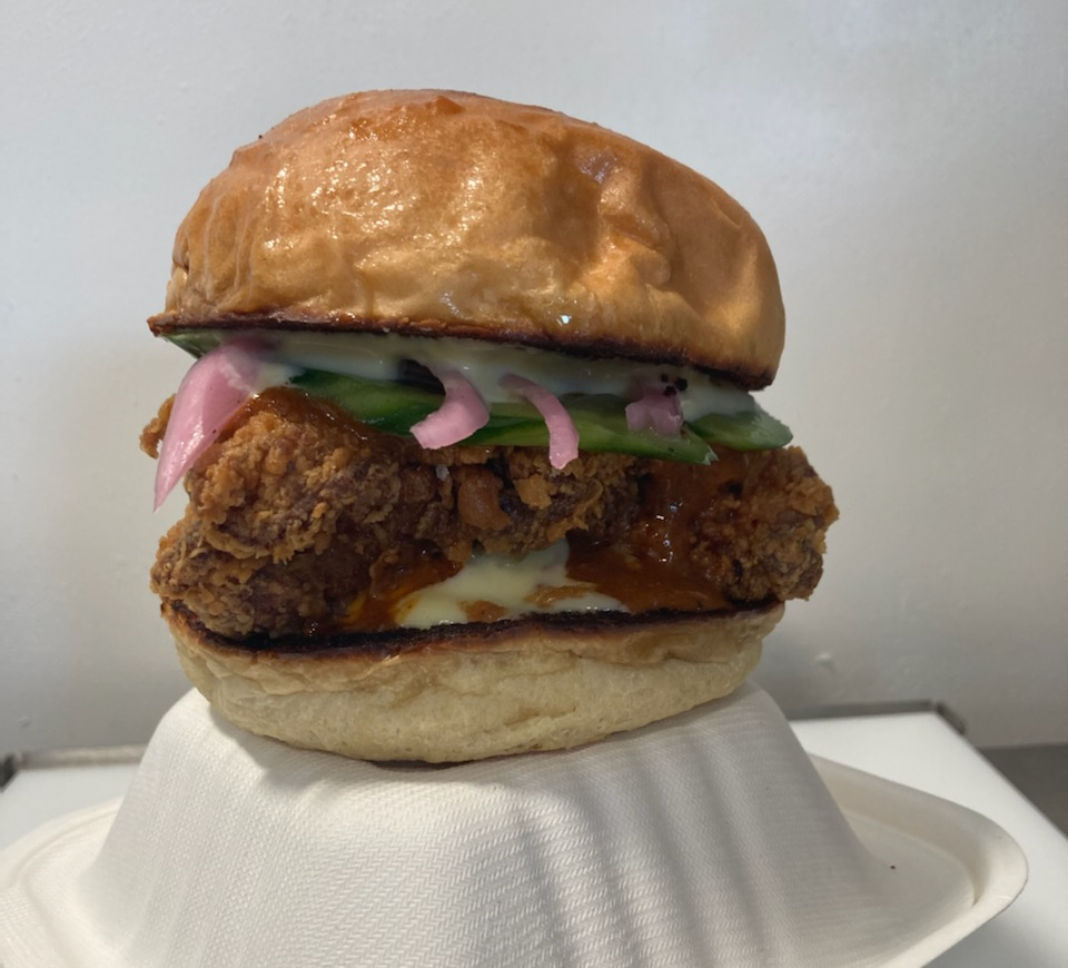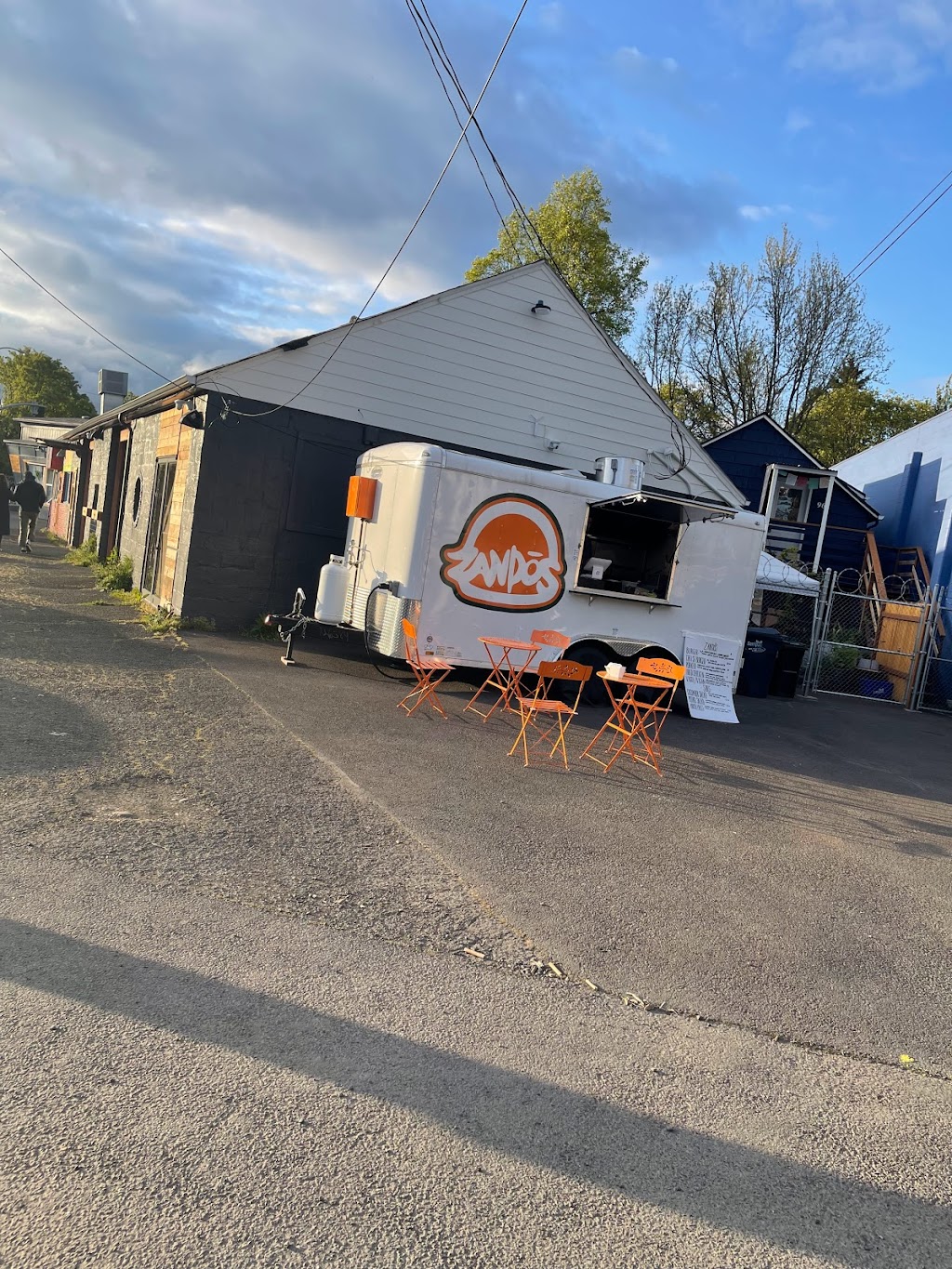 This food truck is amazing and has some of the best food in Eugene period! I was visiting from Minnesota and I honestly ate here each day I was in town in order to try something new. The “porker” sandwich is one of the most unique and best tasting sandwiches I have ever had (savory pork with sweet apricot chutney—so, so good). The fried chicken sandwich is the perfect level of spicy, and the added veggies make it refreshing too. And the regular old cheeseburger just hits the spot. The chef is super friendly too. Pick up a beverage from the 7-11 across the street and then eat your food at one of the little tables—it will be one of the best meals you’ve had.