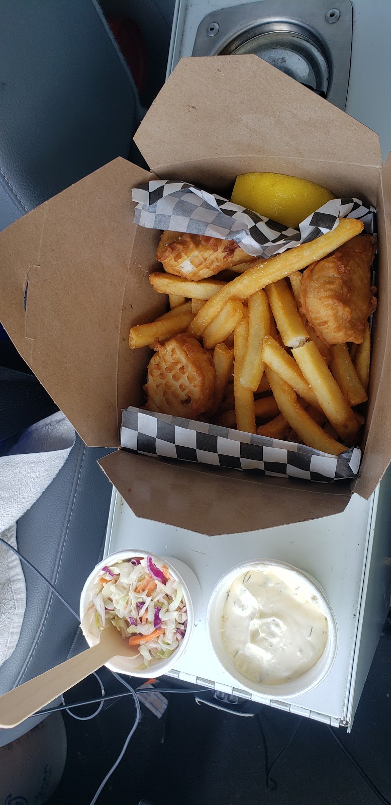 Fresh tuna fish and chips served with cole slaw, tarter sauce and a wedge of lemon plus malt vinegar if you want it. I am not a fan of tuna as fish and chips but thought I would give it a try. It was definitely fresh tuna but still not a fan of it deep fried. Next time I will get the tuna sandwich. The fries were great and the cole slaw was probably the best I have ever had. I would recommend a try. There are some bistro tables next to the food truck to eat there or you can take it and eat it at the beach.