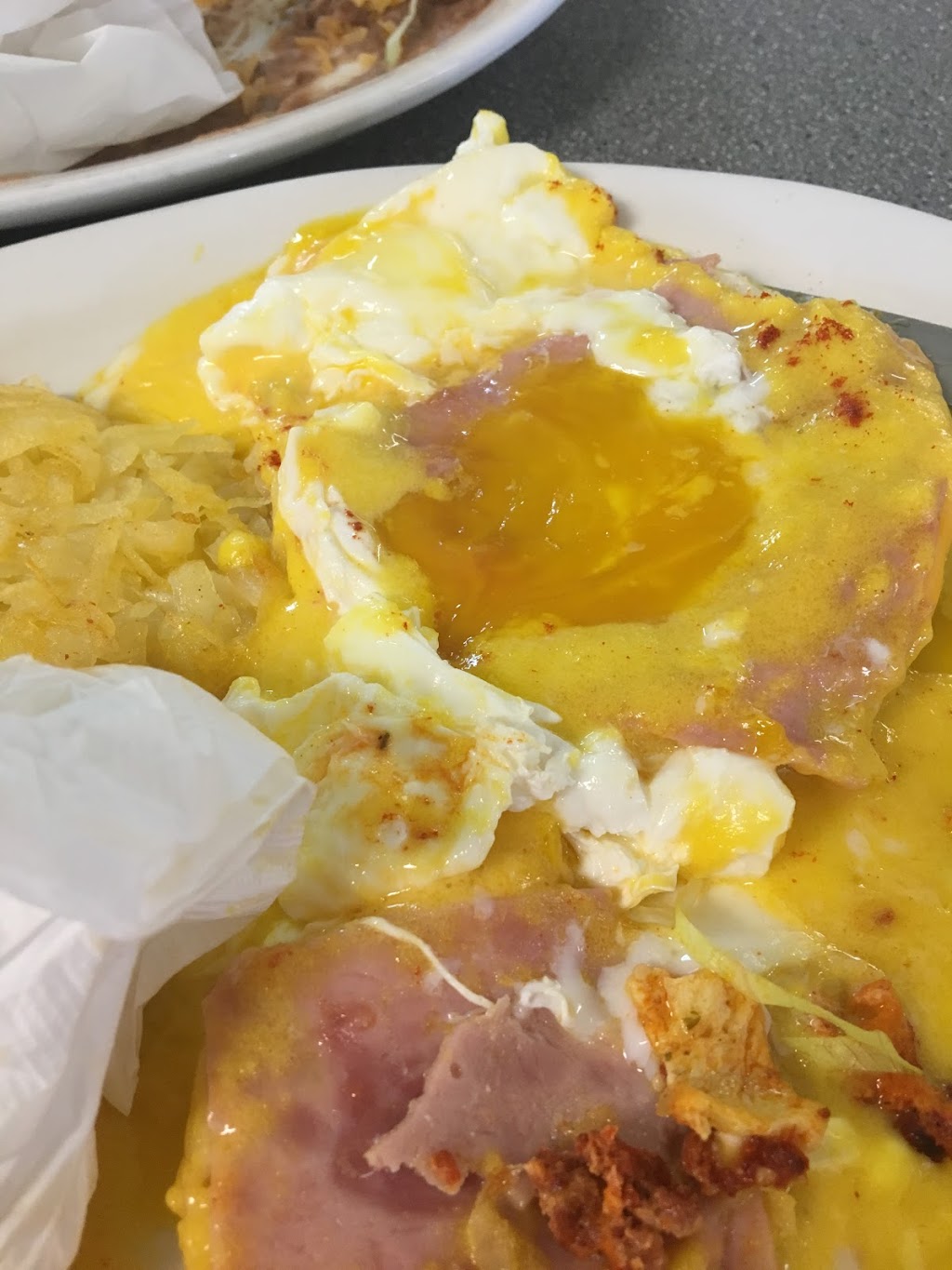 I ordered the slab of ham breakfast. It was made prefect service was great also didn’t have to wait. I definitely will be coming back. Hash browns were real shredded potatoes which made it seem like home cooked meal. Thank you guys. The only complaint would be like I wish they would go to thick cut bacon but the bacon was still good though