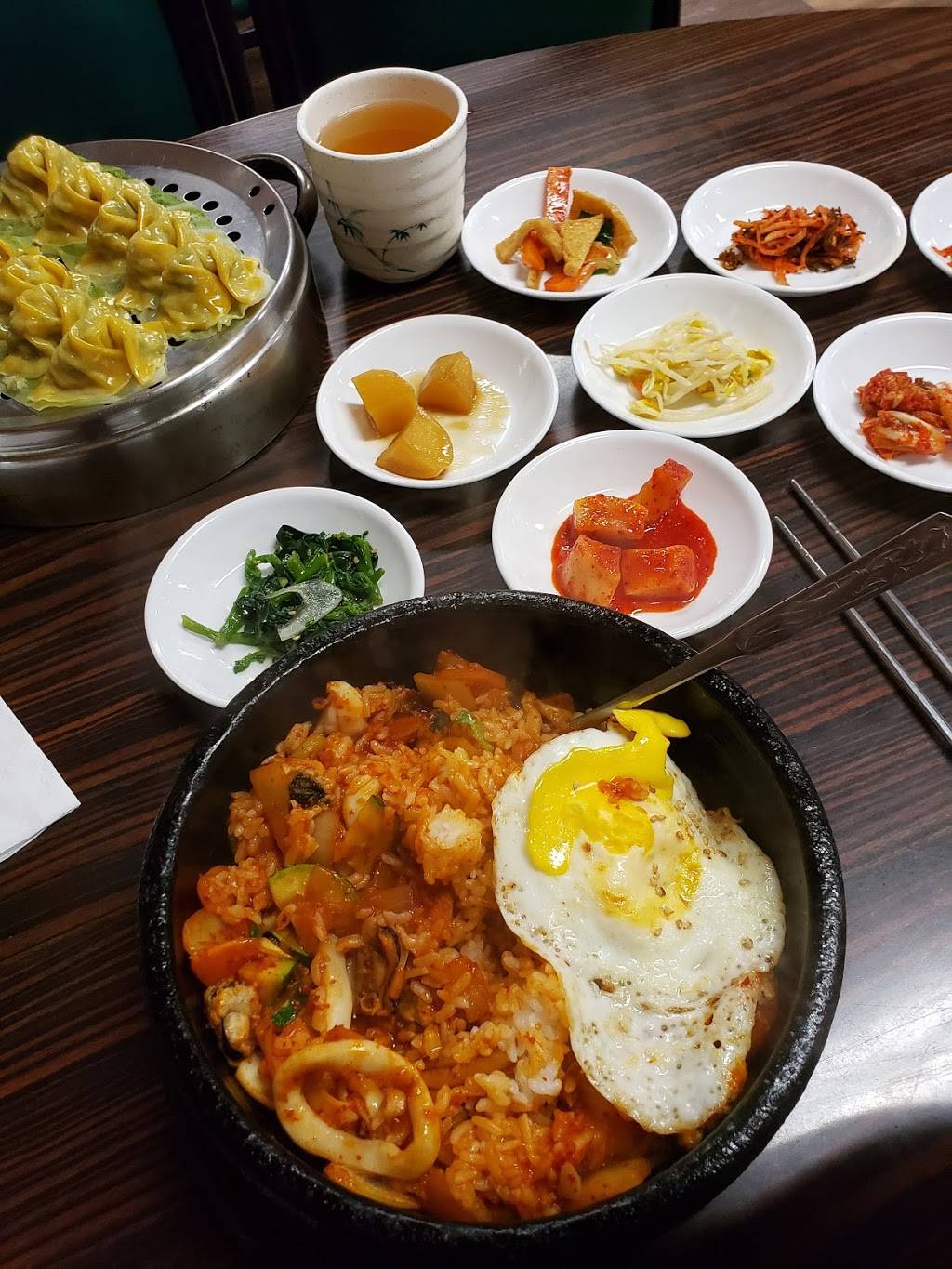 Hidden inside a Asian Supermarket second floor. They offer authentic Korean food. Most of the items in the menu comes with multiple side dishes.