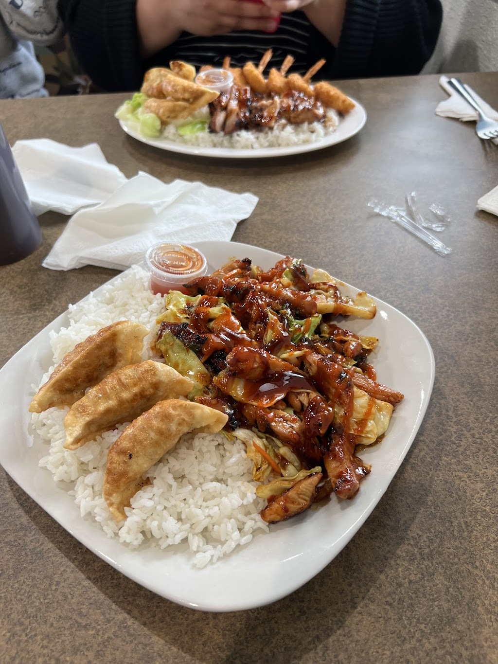 I was actually extremely surprised when biting into the chicken and it quickly became the best chicken teriyaki I've ver had, portions are a great size for the price as well. Loved the potstickers that I got too. Everything is great.