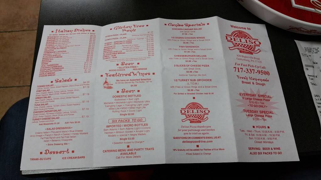 Great selection of Gluten Free!!! They have gluten-free pizza (including choices from specialty pizzas), ravioli, stuffed shells, and pasta. The gluten-free rolls for the garlic bread and subs are great too!! They also have gluten free salad dressings if you want a salad. Everything we tried was delicious!! The staff was very friendly and were knowledgeable about which menu items were gluten free. The dining room was also bright and clean. While we were eating, there were several carry outs for Gluten-free pizzas. We ordered extra to take home because we cannot get Gluten-free pizza and subs in the town where we live. Our pizza did just great reheating in the oven, and the sub roll held up well—it didn’t get mushy as gluten-free bread can do. If you are looking for gluten-free pizza, subs, or pasta, you need to try Deliso Pizza!! Be warned—some first-timers may shed a tear-of-joy that they have finally found a pizza place with gluten-free!!!