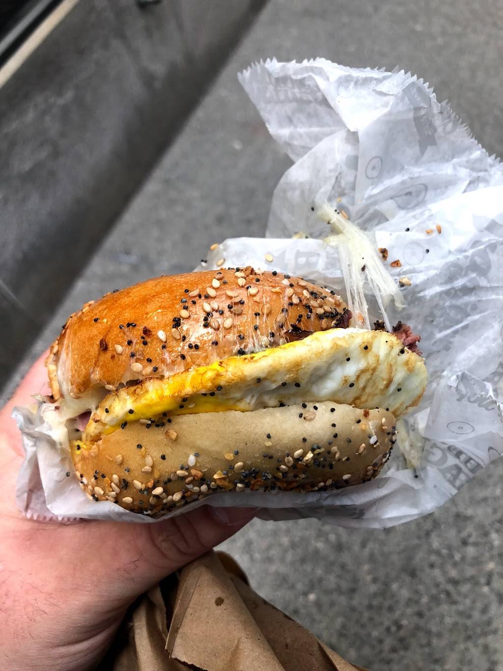 It was an okay bagel sandwich, but nothing about it sparked my desire for more. I always want eating to be a nearly emotional experience, because food brings joy, but this wasn't doing it for me. The pastromi in it was great, and there were good elements, but all in all it could've been better.
