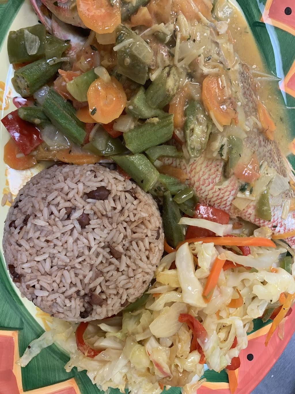 Delicious red snapper in coconut curry and jerk chicken dinners!