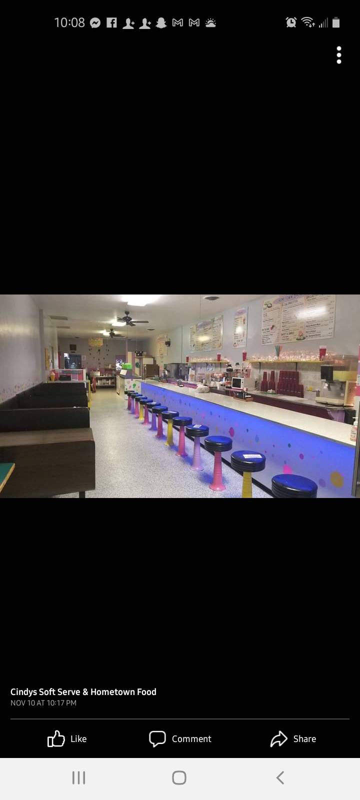 Cindy’s is a great little family owned restaurant.. the food is always on point. The staff is always friendly. They make having birthday parties fun for kids. They are always trying to do things in the summer time to bring the community together.. I’d your looking for great food, ice cream all year round, and a friendly environment to eat this is the place to go