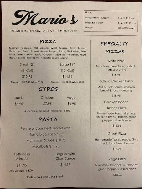 You can review this Business and help others by leaving a comment. If you want to share your thoughts about Mario's, use the form below and your opinion, advice or comment will appear in this space.