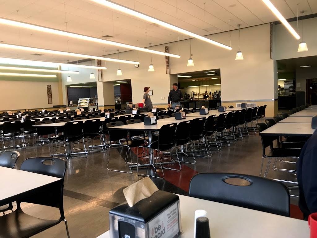 We spent the day at KU and ate at the dining hall. It has a large open dining area both on the first and second floors. We ate lunch on the second floor and other than a very overdone cheeseburger all else was very good and well prepared. The salad bar had a good selection of toppings and sides. It was very clean and has a great deal of glass windows so it seems open and inviting. There is a lot of variety in the selection of foods available depending on your tastes.